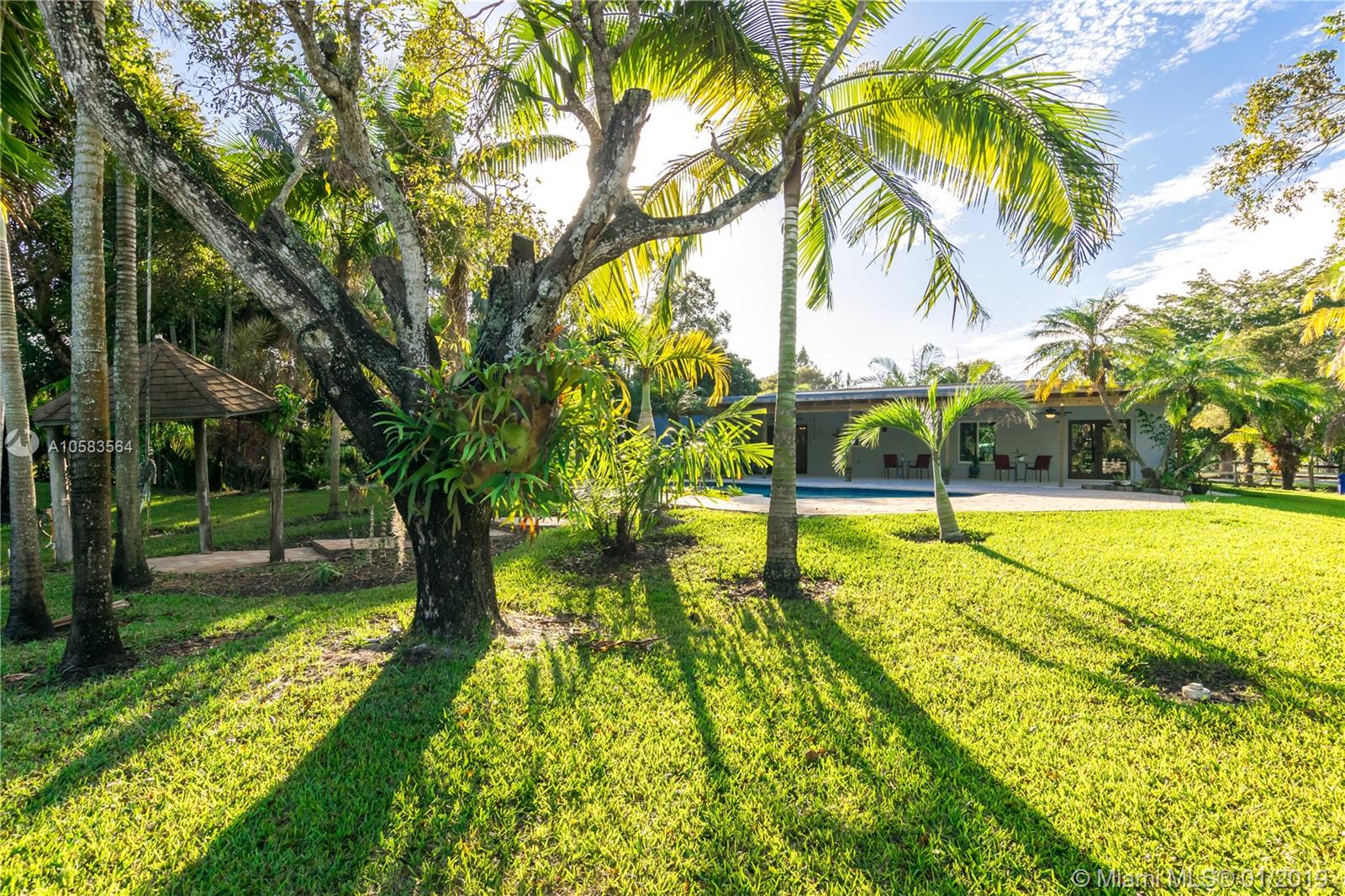 Beautiful Ranch Style Home “ NEW ROOF & HURRICANE IMPACT WINDOWS” This Ranch style home is located in a wonderful neighborhood with great schools. Close to I-75 & I-595. It is a beautifully remodeled open space 4-beds 3-baths 2,261 sqft waterfront home with an extra large NEW terrace. One bedroom can be used as In-law quarters or efficiency for extra income. This house is a Tropical Oasis with Exotic Palms, fruit trees and more. Home has an extra large pool. Sits on a 1.07 acre with a canal that runs on both sides of the property. The property has a wonderful sprinkler system, a state-of-the-art septic tank, and a reverse osmosis water purifying system. It is in ready to move-in conditions or adds your own personal touch.