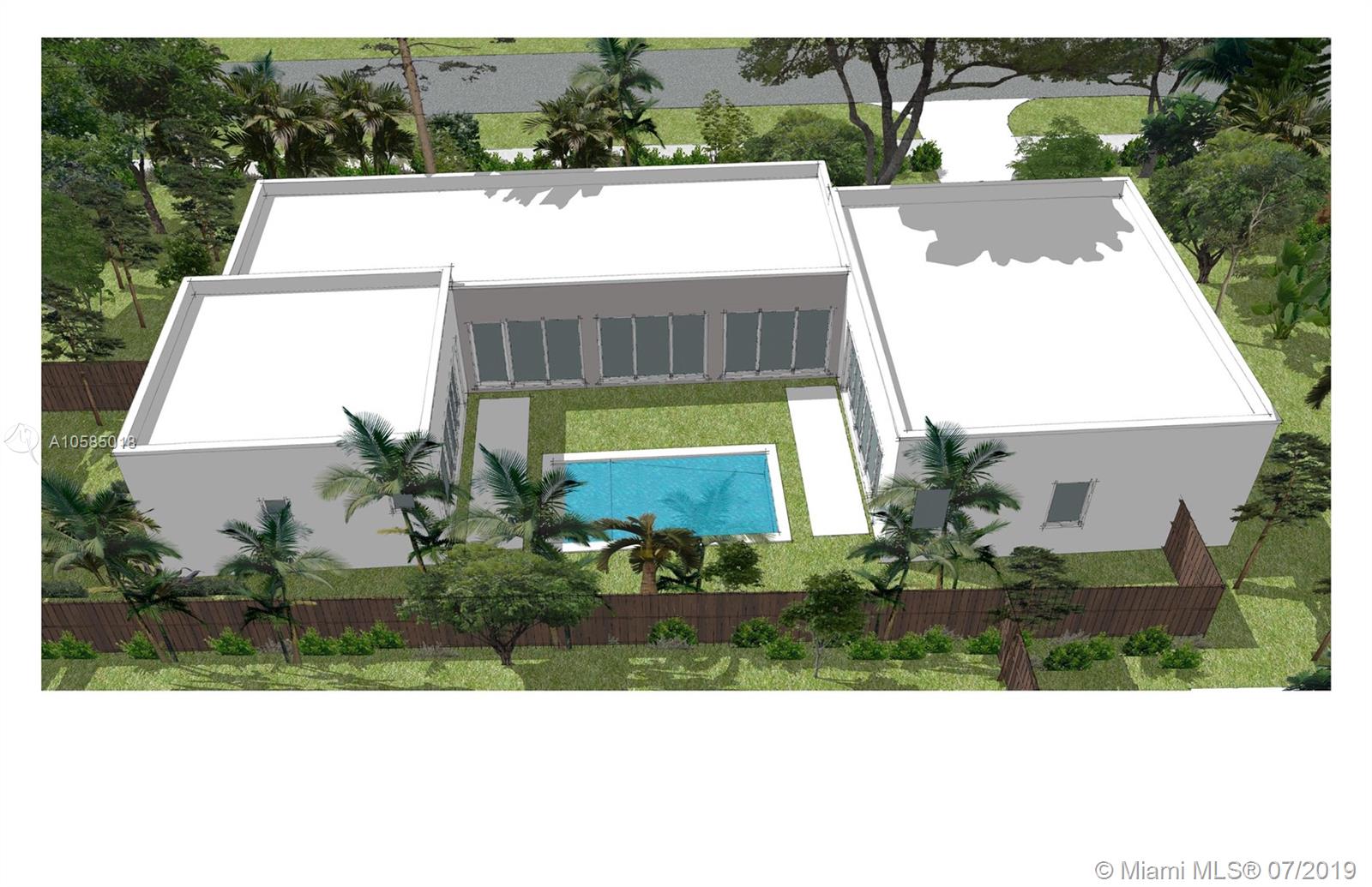 One-story new construction pool home. Stunning mid-century inspired design influenced by world renowned designer David D'Imperio featuring large open spaces. Walls of glass connect the natural fabric of nature where the organic world meets the mechanical. Beautiful, new 5 bedroom and 3.5 bathroom home featuring hurricane impact windows and doors offering clear views of the tropical landscape. The large, Dining/ Kitchen/ Family, Great Room overlooks the inviting pool. The master bedroom has over-sized walk-in closet. This exquisite home is centrally located near South Miami Hospital, University of Miami, South Miami Metro-rail station, and major highways. This home is in the final stages of completion.