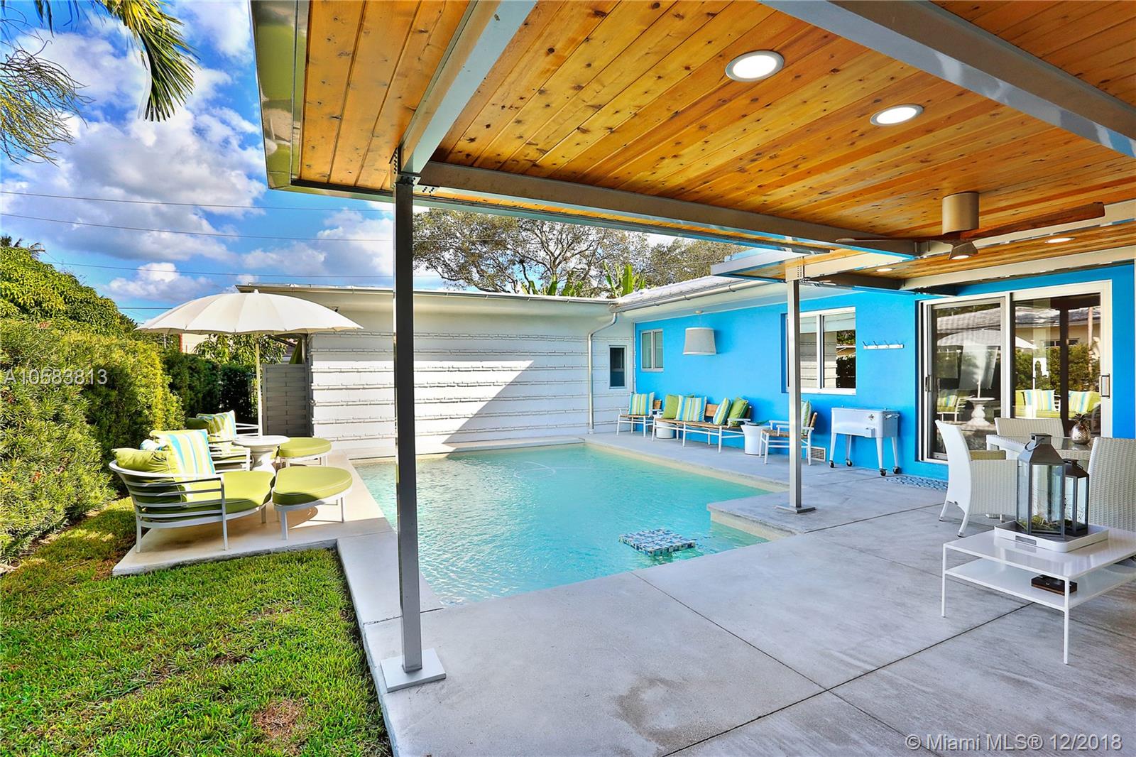 This exquisite MIMO masterpiece has been completely remodeled down to the concrete walls with no expense spared. Designed by famous Architect Percy P. Turner, and located on a large corner lot on one of Miami Shores most beautiful streets, this 3/3 has a 680 sf oversized 2 car garage! Features include all new plumbing, electric, AC & ducts, high-end gourmet kitchen (white lacquer shaker cabinets, SS appliances, honed calcutta marble counter tops), floor to ceiling impact windows and doors, 3 new in-suite bathrooms with designer tiles and quartz vanities, new septic system, new heated private courtyard swimming pool, polished terrazzo and rich wood floors and so much more. No flood insurance required! Easy to show, bring your fussiest clients.