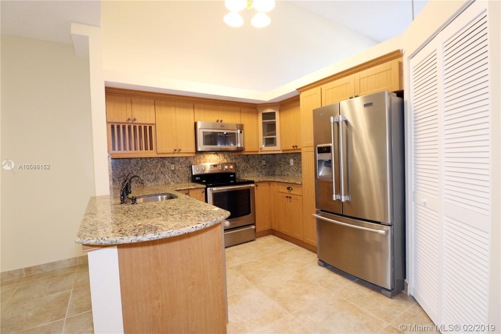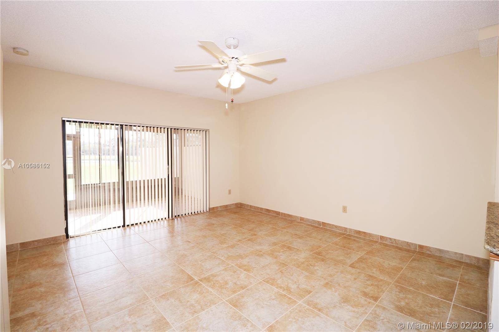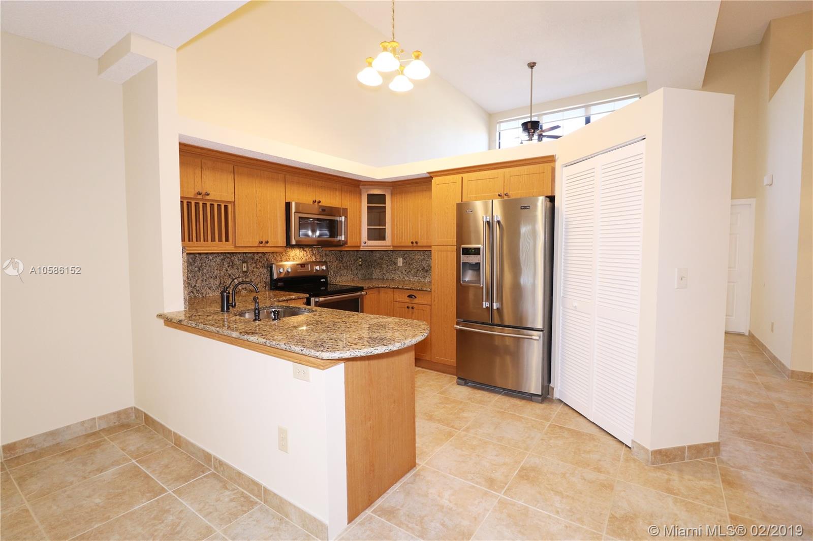 Great central location Pembroke Pines just west of I-75, impeccable townhouse in sought after golf community, 3 bedrooms, 2 1/2 bath, vaulted ceilings living dining rooms, updated kitchen stainless steel appliances and granite counters, family room, master bedroom on ground floor crown molding and plantation shutters, 1 car garage plus driveway space for two vehicles, interior freshly painted, new carpet upstairs, roof replaced, newer central air conditioner, glass enclosed back porch, open patio with pavers, on golf course with lake view, accordion shutters, courtyard, maintenance includes lawn, sprinkler, exterior paint, pressure cleaning roof driveway and sidewalk, reserves, cabana with pool and spa, 24-hour guard at the gate and rover patrol, tv cable, alarm monitoring. Must see it!