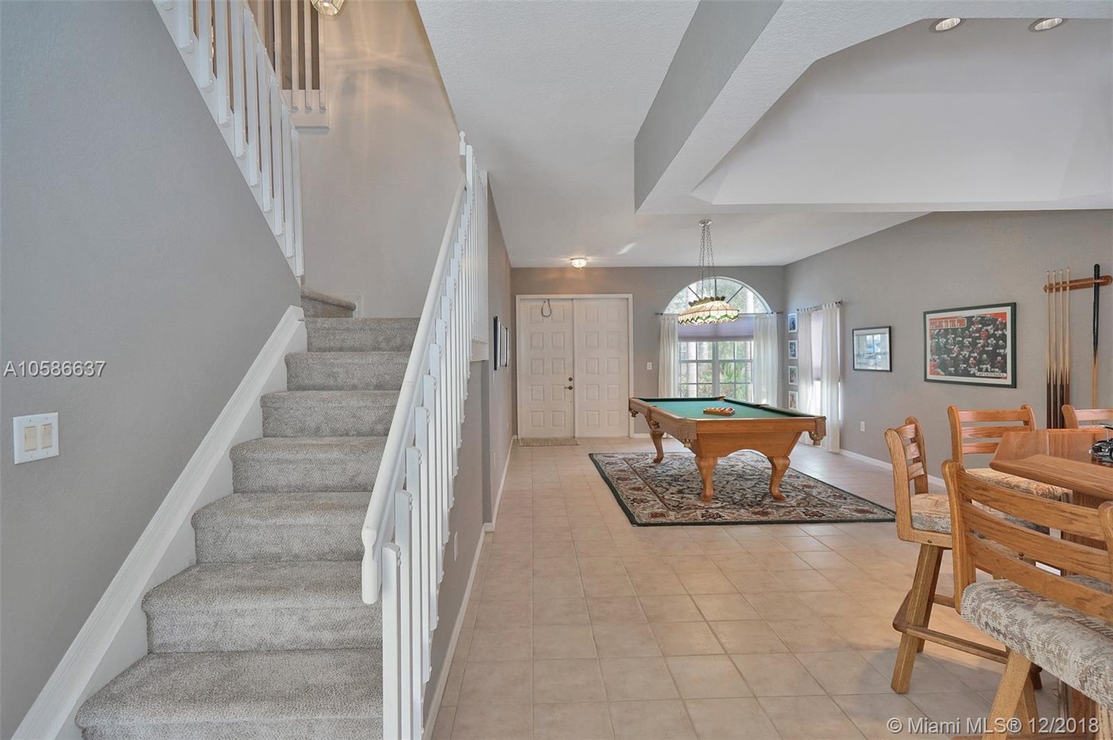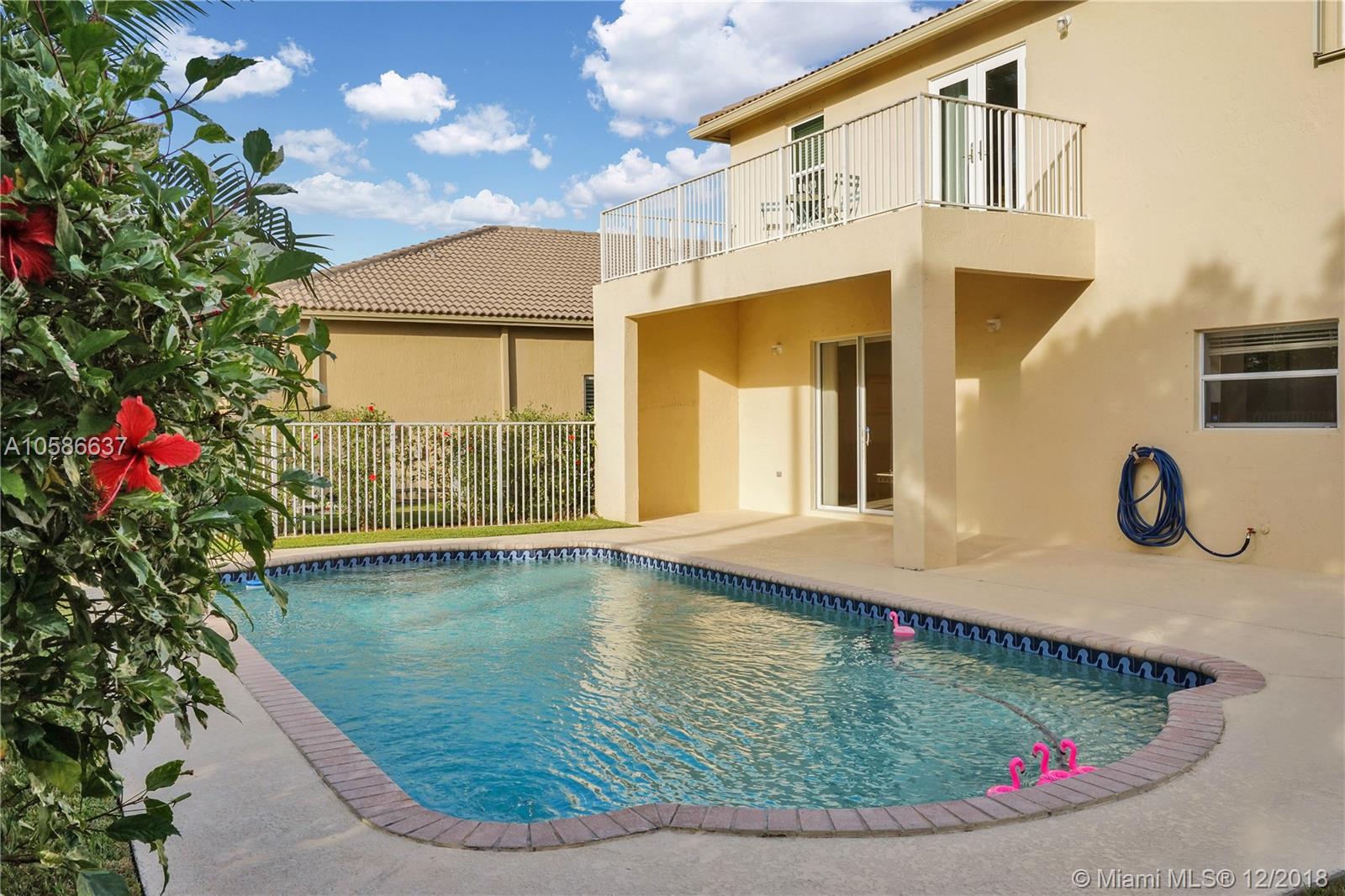 Pristine home located in highly desired Emerald Estates Community in Weston, FL. Two story (all CBS construction), 4 bedroom home with 2.5 baths and pool. Very spacious Master bedroom with sitting area and French door opening to balcony. Impact windows/door and accordion shutters upstairs. Flooring in all bedrooms upgraded to engineered hardwood and new carpet on stairs. Tile on 1st floor.Kitchen has Stainless steel appliances. Easy and close access to I-75. Publix shopping center and Cleveland Clinic hospital 1 mile away. A+ schools for area and school bus stop one house away. Wonderful neighborhood amenities (clubhouse with gym and pool; park with playground and tennis courts). Beautiful sunset views.Association includes cable, landscaping,internet and alarm.The roof was just checked