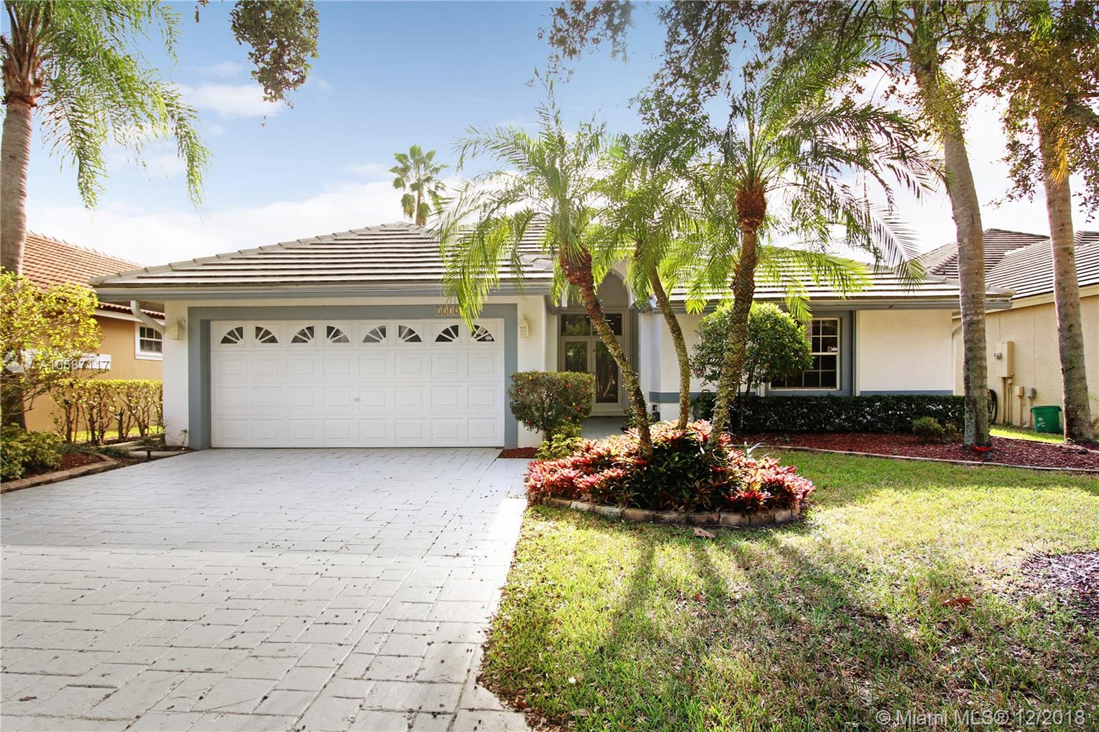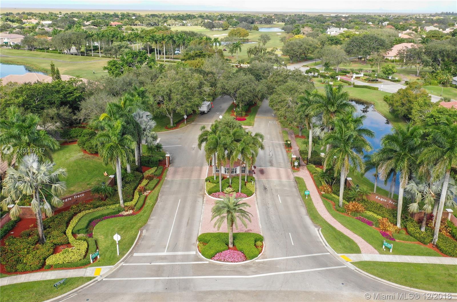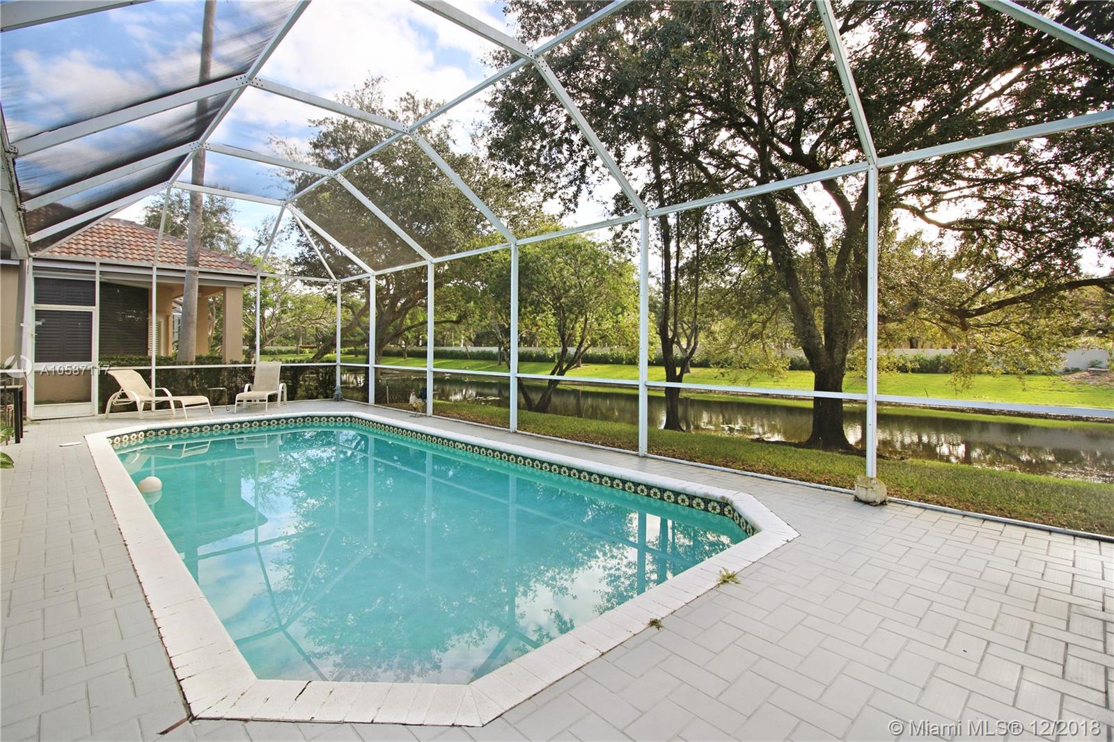 Beautiful sunny home in exclusive gated Eagle Trace community. New roof 2017, new AC 2018, new oven range & microwave 2018, hurricane protection on every window & door. Situated on sought after Highland Place w/ no thru traffic, this waterfront home features a screened pool area & covered patio w/ access points from the kitchen, living room & master bedroom, making it an entertainer's dream! Master bedroom is absolutely massive w/ space for a king bed and full furniture arrangement including sitting area plus 2 walk-in closets; huge master bathroom has double vanities on opposite walls, oversized jetted tub and separate shower. 2nd and 3rd bedrooms have jack & jill bath plus walk-in closets in both. Laundry room has abundant storage. 60 second drive to Publix, 3 mins to the Sawgrass!