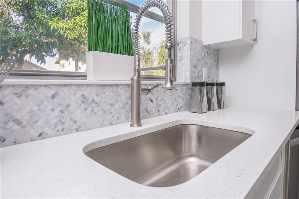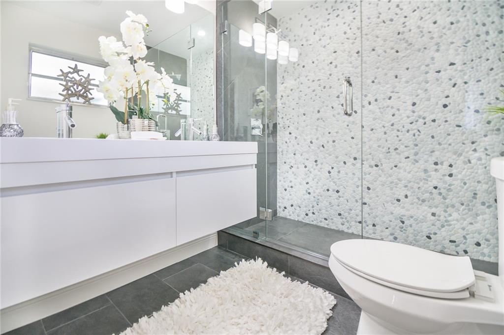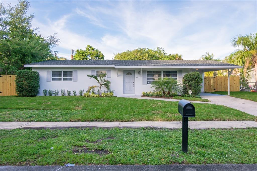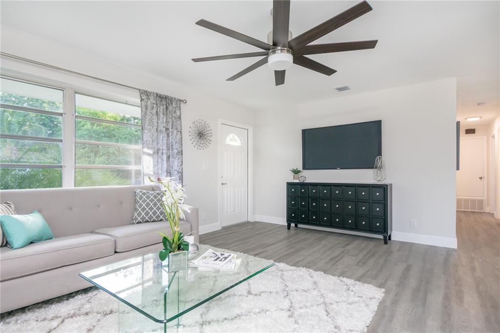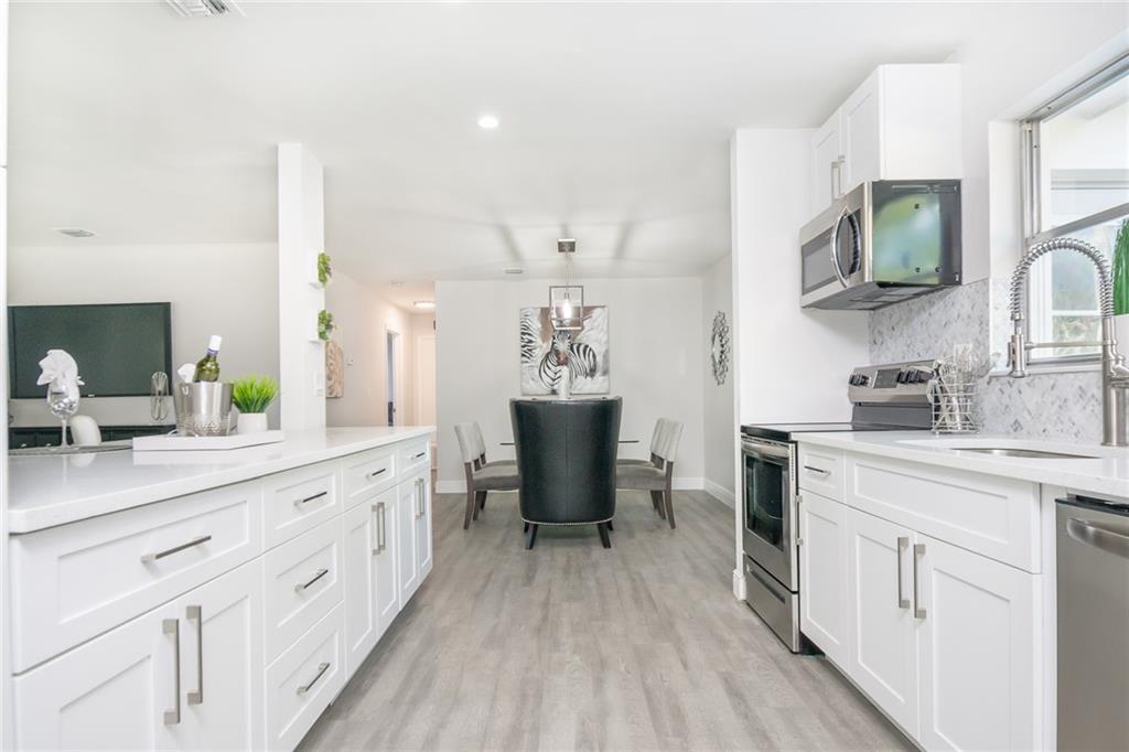 Stunning, elegantly remodeled 3 bedroom, 2 bathroom home in East Boca! Contemporary open living, dining and kitchen areas add WOW!!! Beautiful plank flooring throughout with modern colors make the space bright and inviting. Kitchen is ready to entertain boasting white stone counter tops with snack-bar, stainless steel sink & appliances. Bedrooms have walk in closets. Separate laundry with stone counter. Newly remodeled bathrooms with floating vanities and gorgeous tile work. Exceptional tile, stone, glass shower & dual sinks in master suite. Appliances, fixtures, plumbing, lighting, electric and roof new!!! Huge backyard with open patio & room for pool. Home on the end of a nice quiet East Boca street close to highways, shopping, beaches, A rated schools, resorts, airport, mall and more!!!