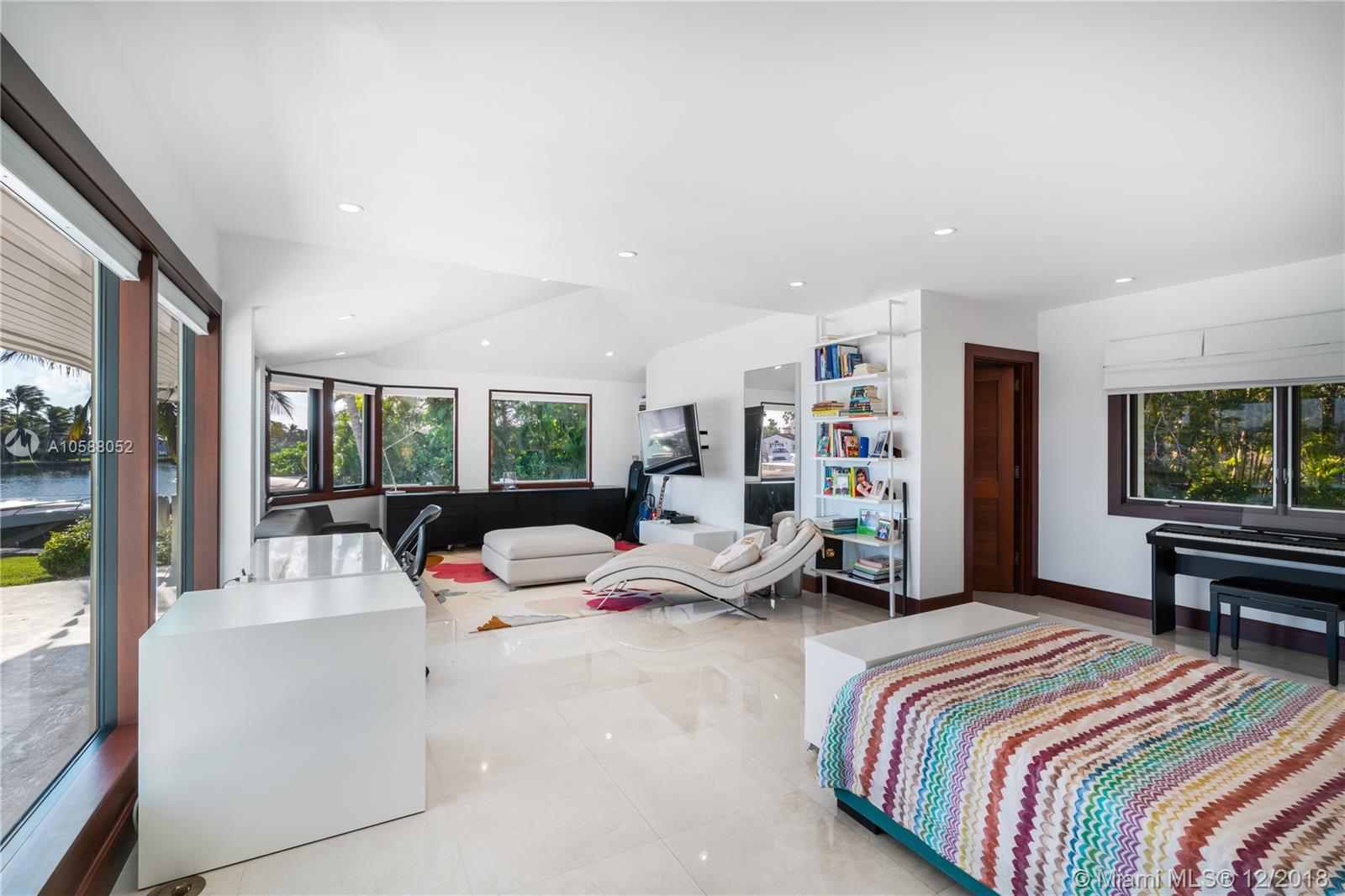 Breathtaking wide water views from this completely updated Tropical Modern acre lot home in guard gated Gables Estates. 190 ft of private deep­water dockage & direct access to Biscayne Bay. Enjoy waterfront views & natural light from most areas of the home. Dramatic double volume ceilings in living room open to lagoon. Spacious entertainment areas both inside & out. Gourmet eat in kitchen w/ top of the line appliances, custom wood work, marble flooring, summer kitchen, generator & impact windows.
