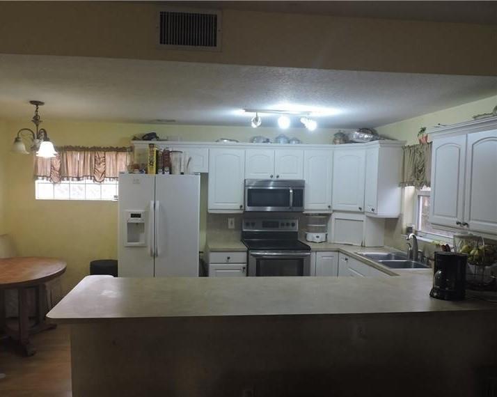 Needs work! Nice 2 story home with features 4 beds, 2 baths, spacious living areas, kitchen with breakfast bar/counter, high living room ceiling, neutral colors and 2 car attached garage.