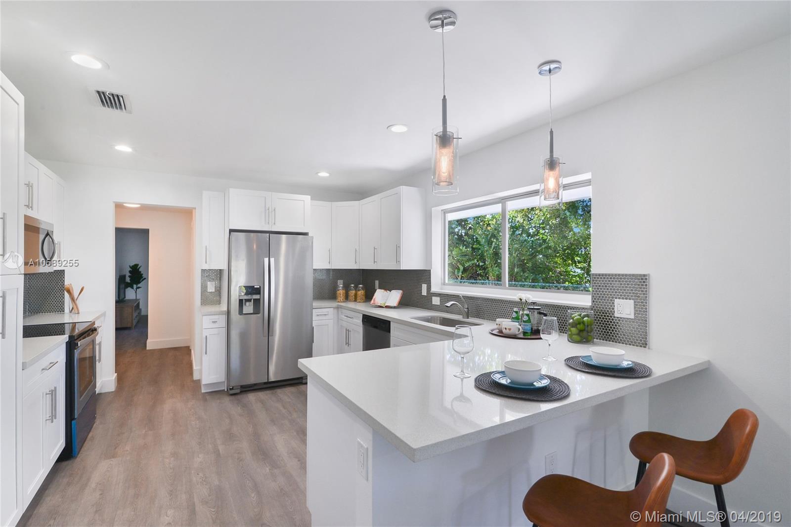 Totally renovated 3 bedroom 2 bath home in Miami Shores. Walking distance to cafés, restaurants, shops, the theater and more. Beautiful new bathrooms, brand new kitchen, all new floors. Hurricane impact windows, new air-conditioning, new electric and plumbing. Very open floor plan with a lot of natural light. Huge covered carport, storage closet, inside air-conditioned laundry room/pantry. Master bedroom has large walk-in closet and spa like bath. Side patio, great for barbecues and outdoor activities. Freshly painted inside and out. This home is in move-in condition.