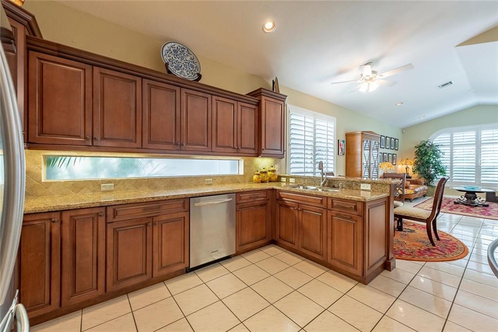 Wow! Perfect home that lives big! Volume, vaulted & cathedral ceilings. Custom remodeled all wood kitchen with tons of 42” cabinets, granite, tumbled marble, stainless steel appliances & more. Remodeled master bathroom features crema marfil & designer fixtures. All wood plantation shutters thru-out. Accordion hurricane shutters. Large covered & screened patio, large south facing backyard. Hi end laminate in bedrooms. Ashbury model versatile 3rd bedroom with fixed glass French doors can be den/office. Choice Home Warranty Plan until June 2021 transfers to buyers.