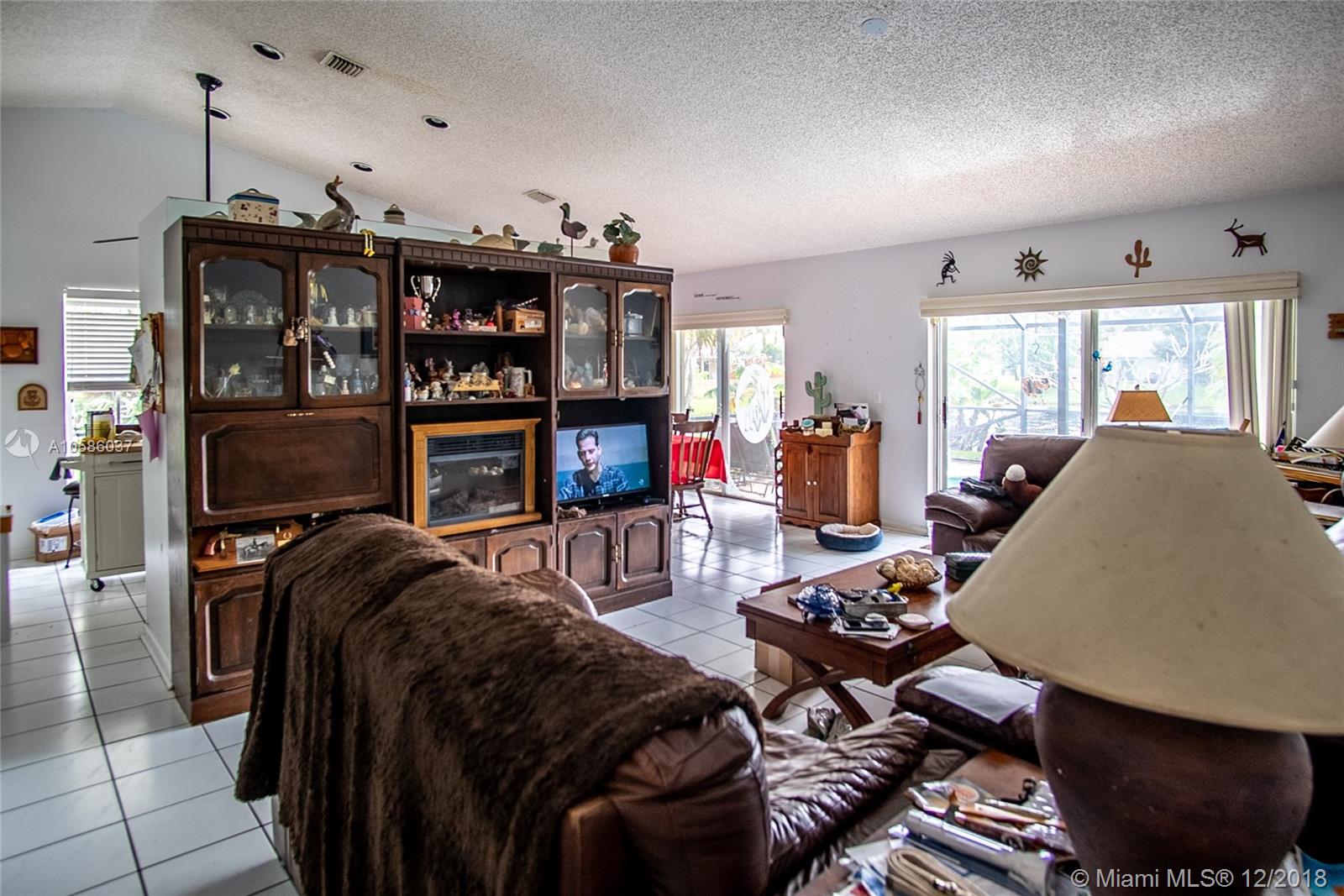 Lovely three bedroom two bathroom pool home on lake with two car garage. The roof was replaced in 2018 and has a transferable warranty, the central a/c system was replaced approximately four years ago. Home was built in 1993 and has accordian shutters to provide storm protection. Open living room with vaulted ceilings looking out over pool and lake. Enjoy the water view and fishing as you watch the sunset right from your backyard. This property has enough room for your children and pets to play. Roof and a/c warranties attached. Fully fenced, walking distance to Publix, close proximity to Turnpike and thirty minutes to beaches!