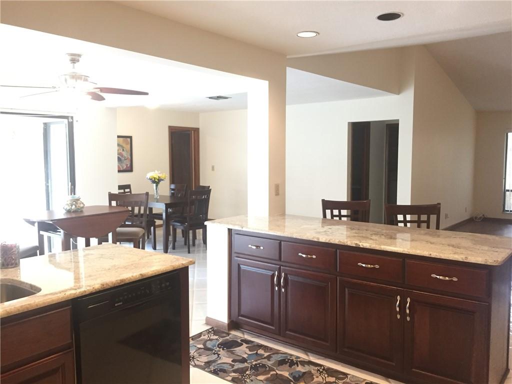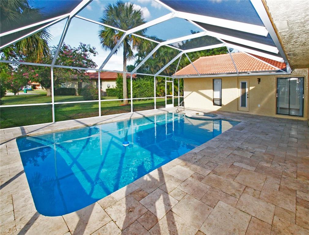 Beautiful Kitchen and Travertine Pool/ Spa Patio! -Also a Brand New Roof! An amazing 4 Bed, 2.5 Bath, updated home on a quiet Cul-de-sac in a beautiful neighborhood! Large rooms! One of the largest homes in this price range in the area! Beautifully remodeled kitchen with Granite Countertops and Cherry Wood Cabinetry. Kitchen and island are open to the breakfast area, dining area and large family room. A separate living room and den allow for private areas also. Two updated cabana baths and 3 sliding glass doors open to a beautiful and spacious Travertine patio overlooking a large pool and Jacuzzi with a newly screened enclosure. Interior is freshly painted and ready for a new owner. Walking distance to highly rated schools, dining and shopping and NO HOA.