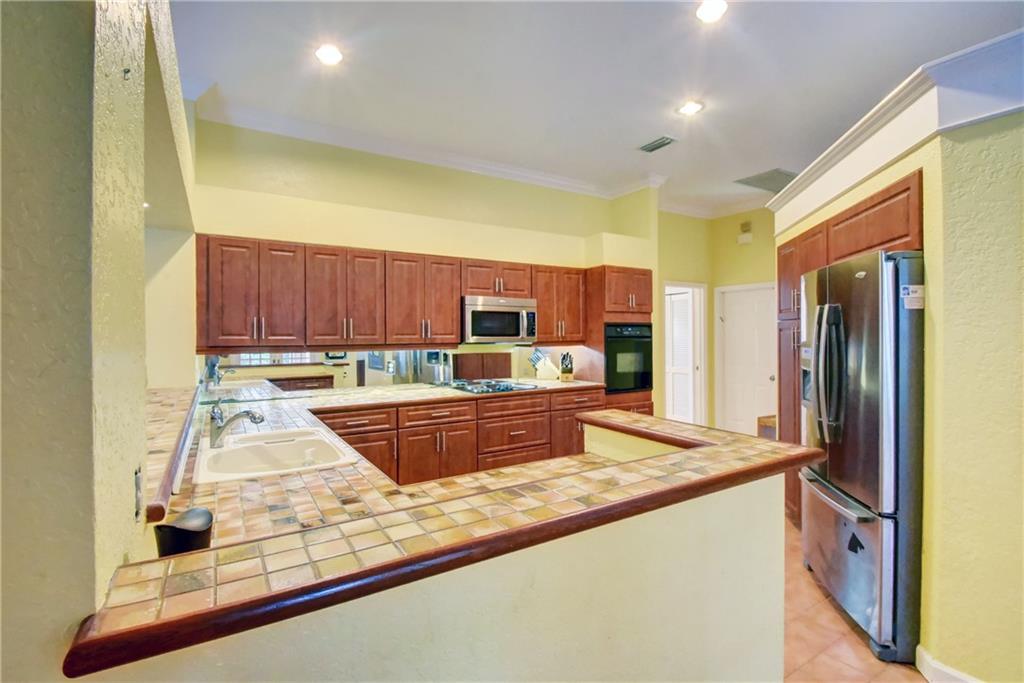 JUST REDUCED! Magnificent one-of-a-kind 4/2 home boasts over 1/3 acre lot in sought after Eastridge Isle. This waterfront, pool home features: newer 2008 roof, updated kitchen, both bathrooms updated w/granite, vaulted ceilings, crown molding, tile floors in living areas, laminate in bedrooms, California closet system in master, oversized bedrooms, laundry room w/storage, hurricane rated garage door, hurricane shutters, 4 sets of French doors, covered patio, large backyard & screened-in solar heated pool. Low HOA fee. Close to schools, shopping, dining and highway. Hurry, this home won't last!