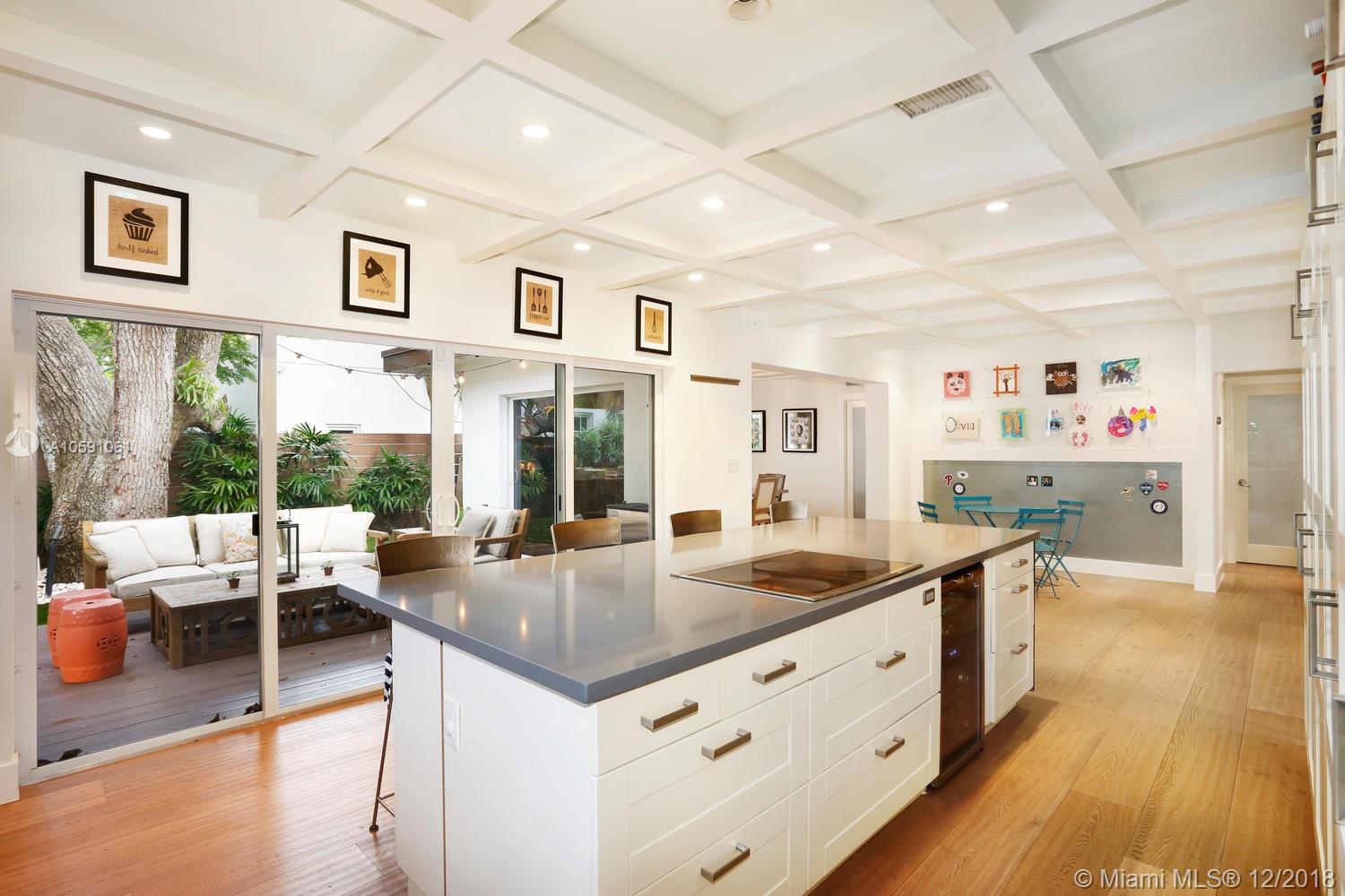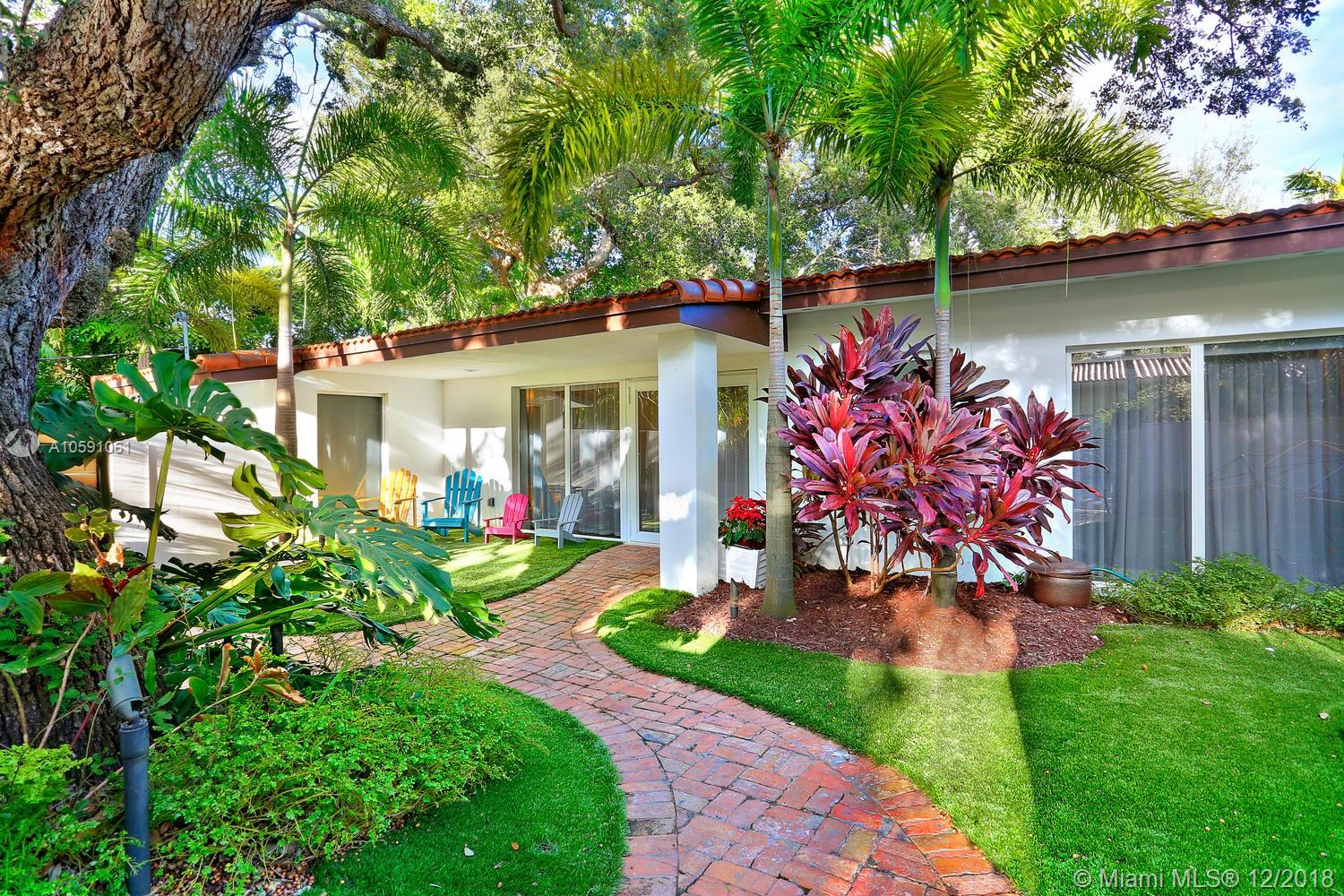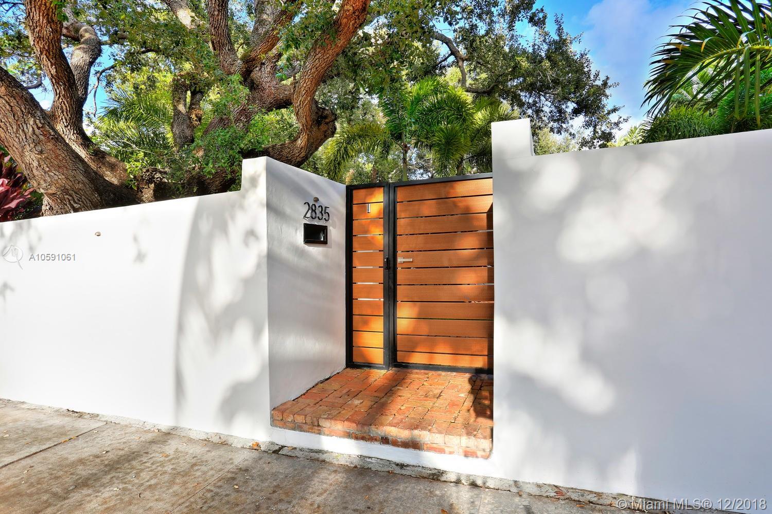 Stunning & ultra-private, walled North Grove home. Total designer renovation completed in 2013 w/ top-of-the-line fixtures & finishes throughout. Light-filled living spaces feature wood floors, custom millwork/ built-ins and walls of glass overlooking the lush garden that surrounds the home. Open kitchen w/classic white wood cabinetry, stainless appliances, quartz countertops, large island w/seating & adjacent breakfast area. The expansive master suite features a sitting area, 7’x14’ walk-in closet & sleek euro-style bath. Enjoy outdoor living & entertaining on the oak canopied wood deck. Located at one of the highest elevations in Miami (not in a flood zone), yet close to the Grove village center’s boutiques, cafes and bayfront parks & marinas. Minutes to downtown, MIA & the Beaches.