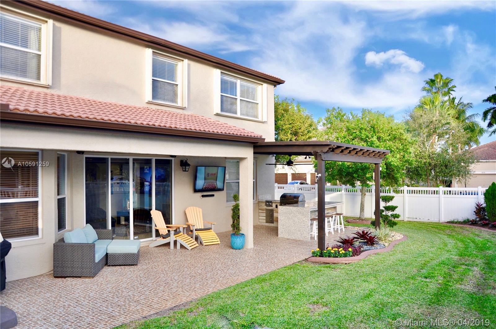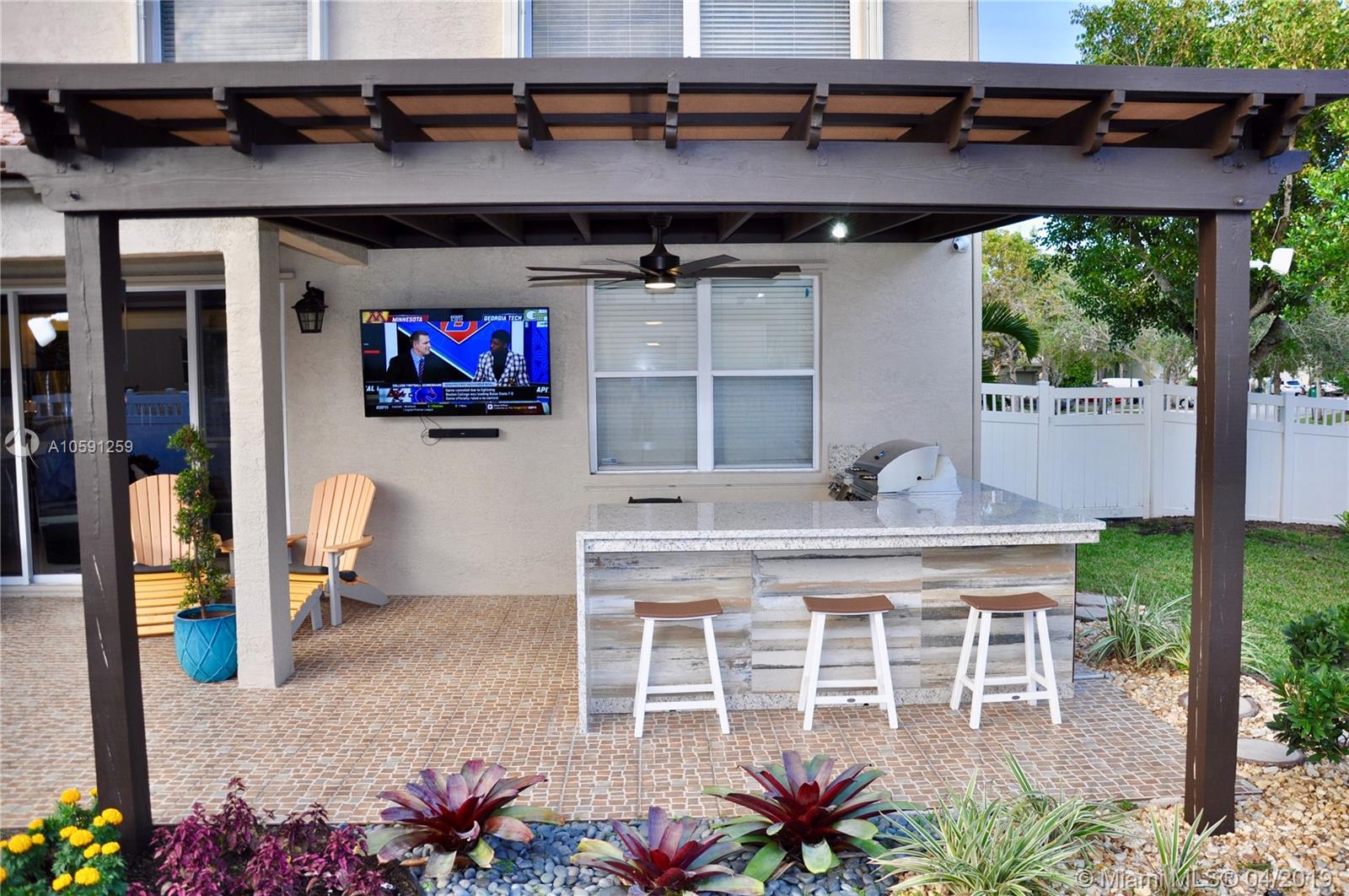 Welcome to "La Alhambra", an exquisite remodeled home with countless highlights. A new modern kitchen is outfitted w/stainless steel appliances, state-of-the-art vent hood, large waterfall style island & subway tile backsplash. The interior merges seamlessly w/amazing outdoor grounds that feature a new $25K fully-equipped outdoor kitchen with pergola. This is a perfect home for great family living & entertaining. One bedroom conveniently located downstairs w/remodeled bathroom. Private quarters upstairs features a spacious loft w/built-in cabinets, ideal for an office space. Master suite awaits with en suite master bath and walk-in closets. Enjoy the convenience of strolling out the door and being within walking distance to the Clubhouse w/fabulous amenities. Come home to pure harmony.