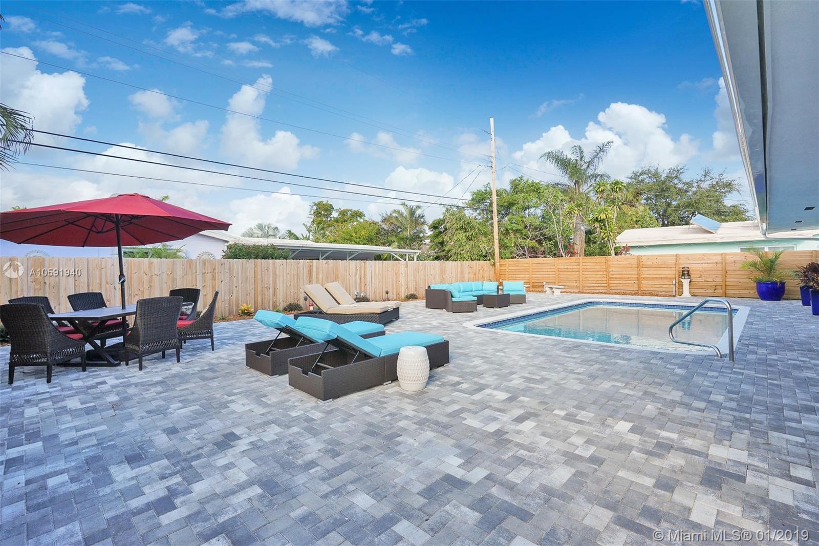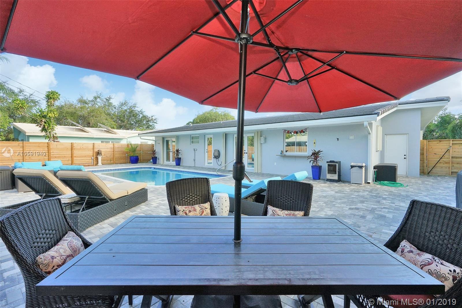 Beautifully renovated 3 Bedroom/2 Bathroom Pool Home located in desirable Imperial Point. This home boasts upgraded finishes, quartz countertops, stainless steel appliances, custom wood cabinets and porcelain tile throughout. This open concept home is perfect for entertaining family and friends. Relax outside by the pool and enjoy meals poolside on the oversized patio in the backyard. Brand new roof, plantation shutters, Ring integrated security system and window tinting treatment. Walking distance to shops and restaurants. Come check out this amazing property!