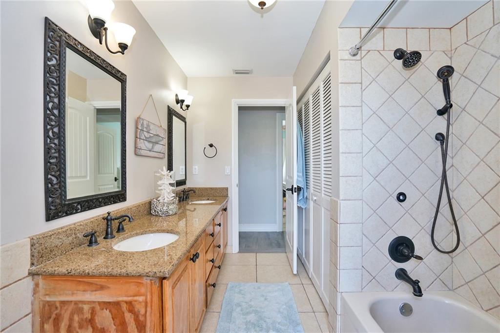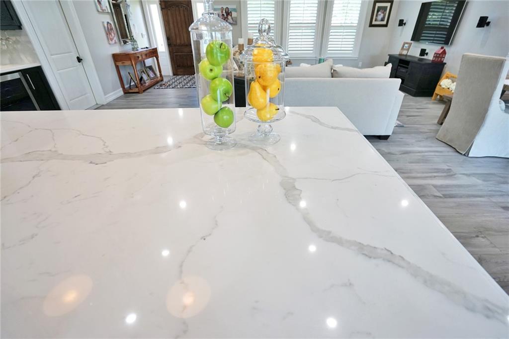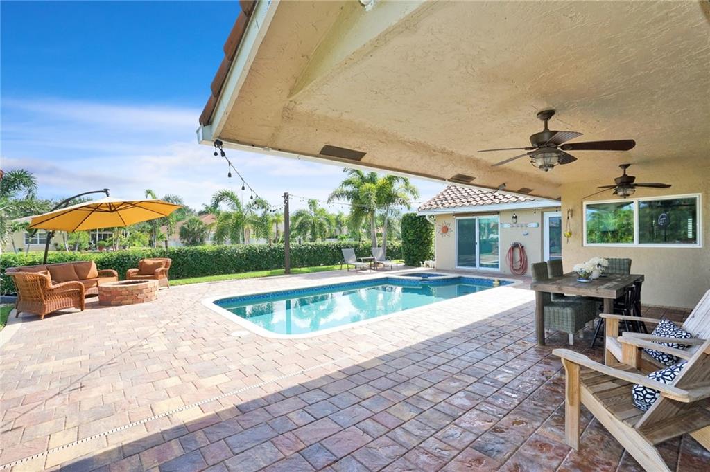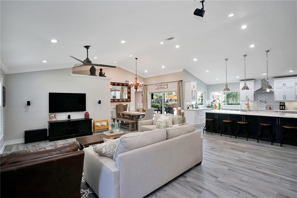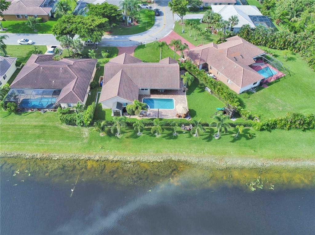 Farm house meets modern in this immaculently remodeled and maintained home!Remodeled one year ago with custom designs, no cost or detail was spared. Large open floor plan, vaulted ceilings,chefs kitchen with oversized quartz island, two separate ovens and top of the line appliances. Porcelain wood tile, custom oversized crown and wood work throughout the home. Custom walk in closets and plantation shutters throughout.Gorgeous water front with lush landscaping, palm trees expanded patio with pool, spa and fire place