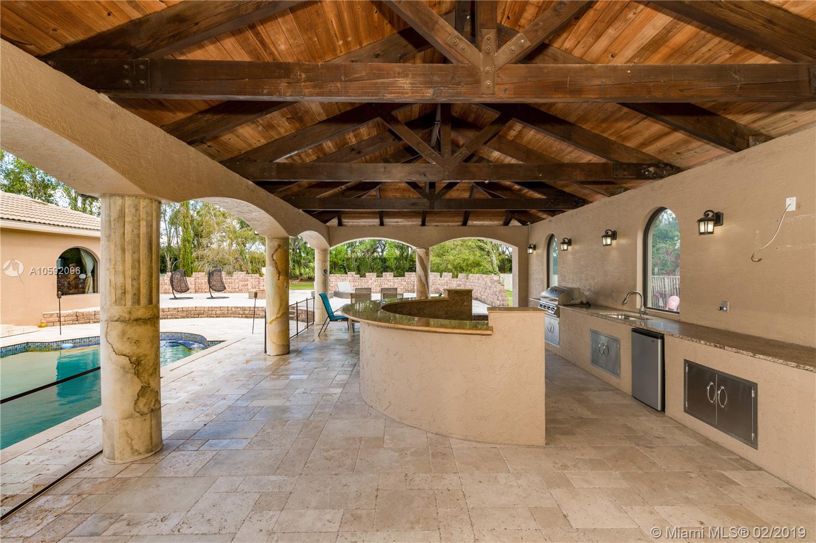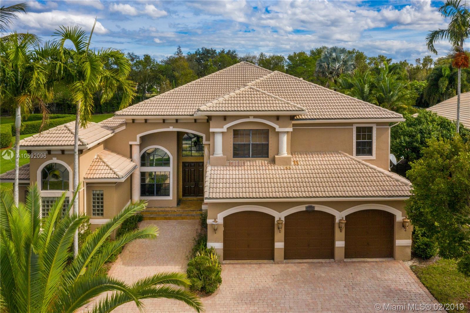Spectacular Renoir model with 6 beds, 5.5 bath. This home has been customized with an extra wing with an in-law's suite, gym, sauna, hot tub and covered terrace with BBQ/summer kitchen. This home has all the bells and whistles; marble and cherry wood floors, european kitchen with stainless steel appliances and granite counter tops, huge loft upstairs, 3-car garage, community tennis/basketball courts adjacent to home, new airs (2018) and new pool heater. Most east facing windows and doors are hurricane impact glass. A-rated school district, 24 hour security and so much more!!