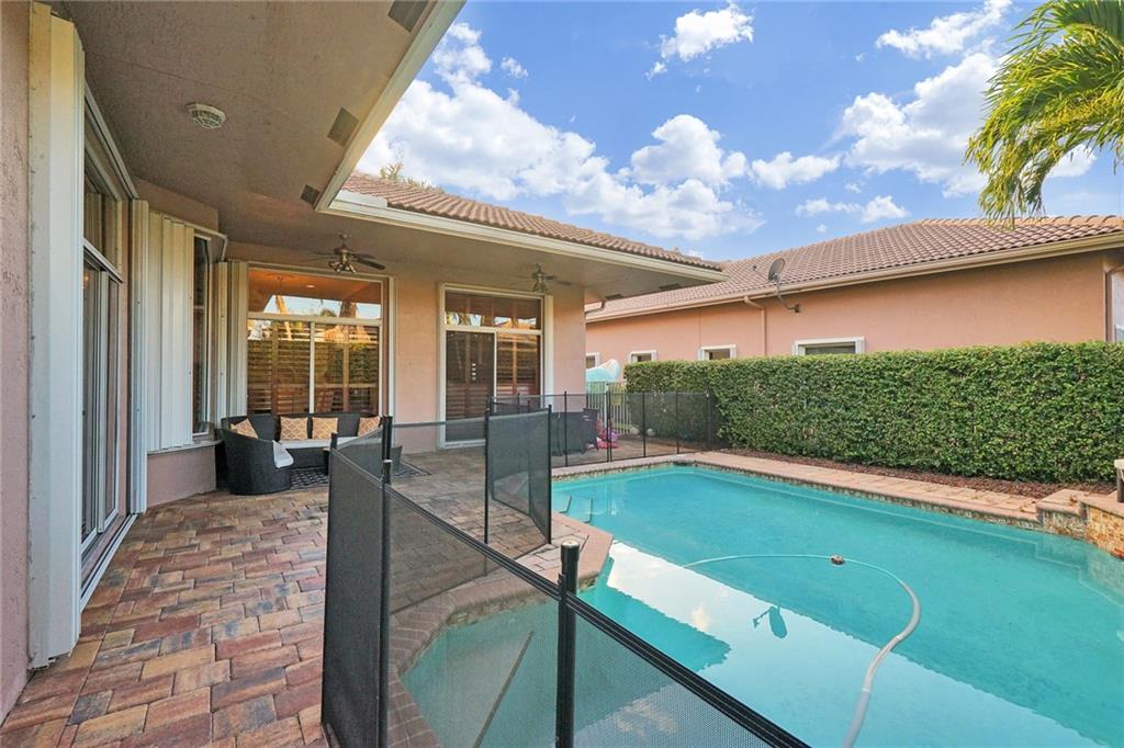 Motivated Seller willing to assist with a portion of closing costs and include desired furniture with acceptable offer! Updated kitchen with white cabinets, quartz countertops, and custom pantry with pull-out drawers. Huge master suite with walk-in closets, dual vanities and marble flooring. All bathrooms upgraded with marble tile, and all closets have custom built-ins! All new appliances, crown moulding, and plantation shutters. HOA dues include landscaping. Accordion Shutters on ALL windows. Huge covered patio with extended pavers and tons of space to entertain, a private pool, and built-in outdoor BBQ. Bonus Air Conditioned storage room!