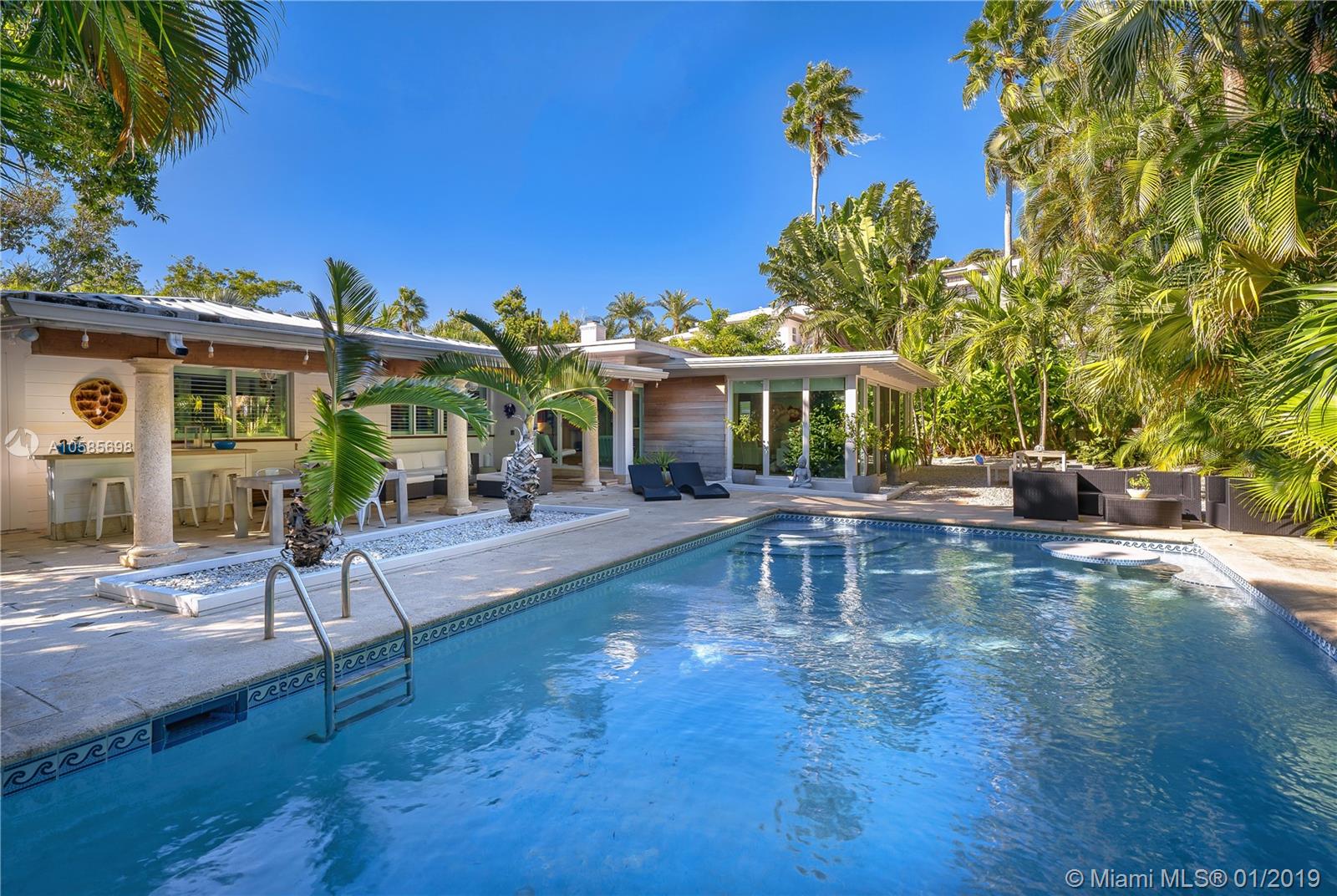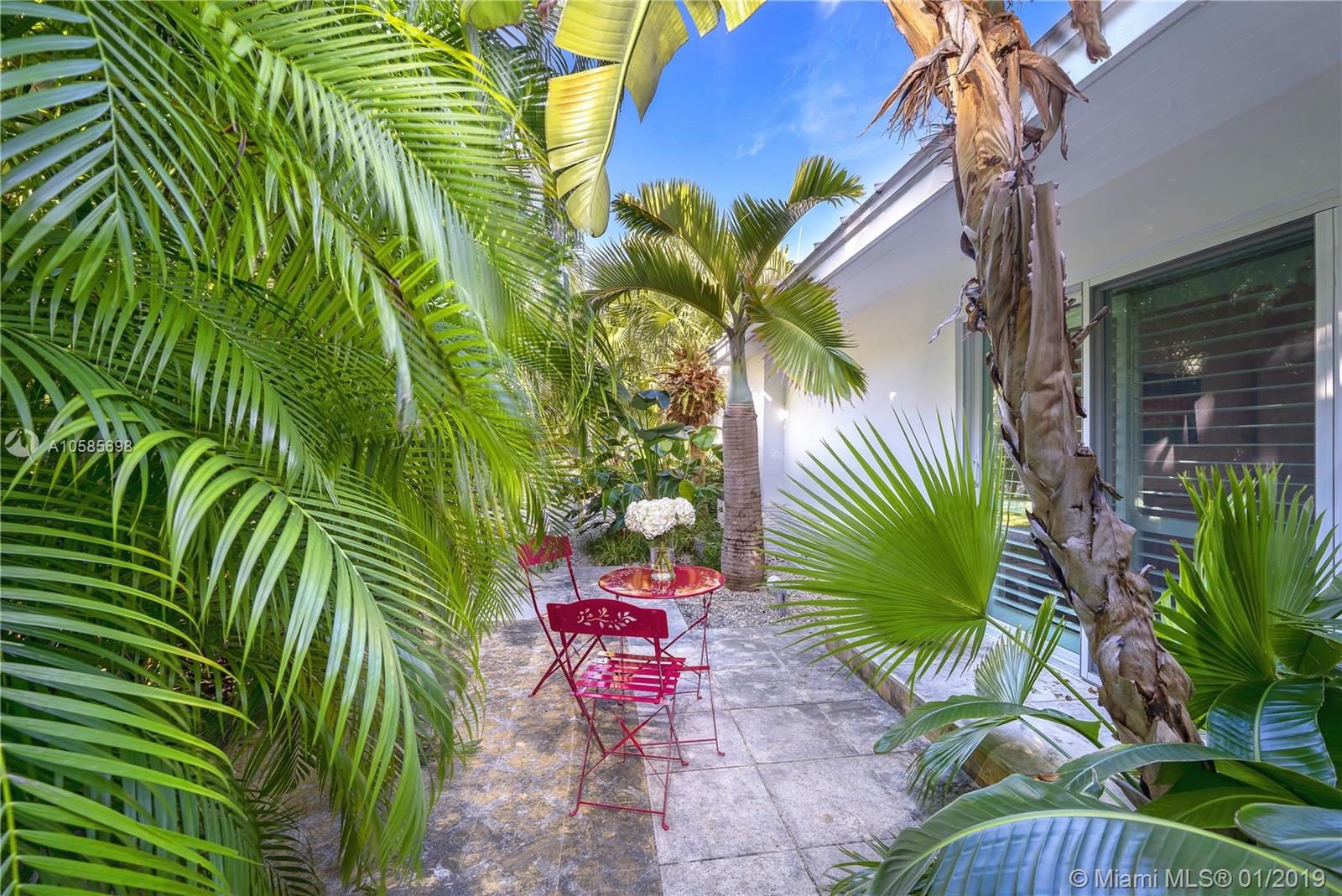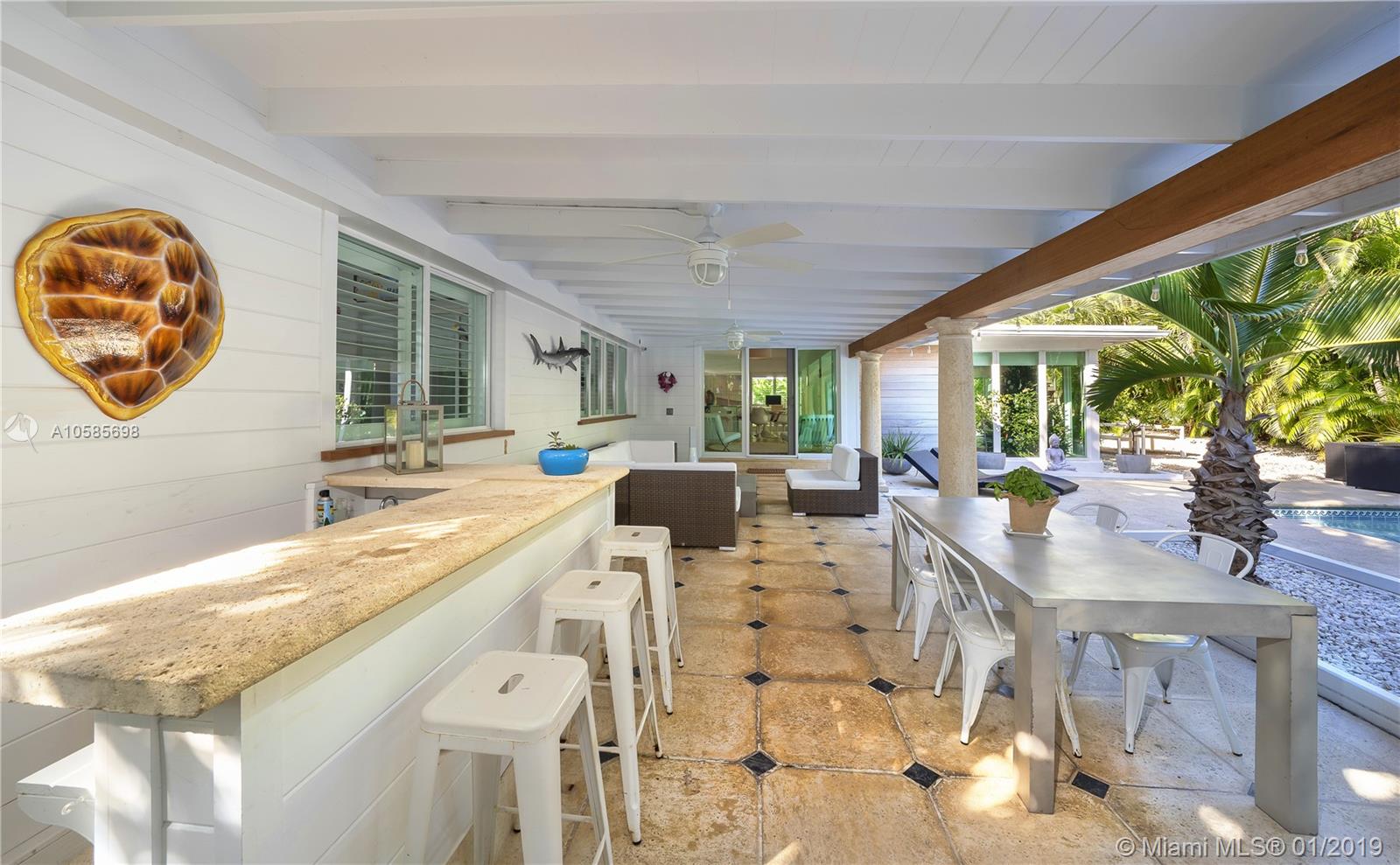 WALK TO THE BEACH ! perfect beach house. Saint Barth feeling all the way. Open kitchen, impact glass doors and windows. covered terrace by the pool adds space and a lot of charm to this island home. Two master suites. two additional bedrooms plus staff. two bedrooms overlooking pool area, one the largest bedroom has a little terrace for breakfast al fresco. Living room offers different areas of entertainment , formal dining, informal breakfast area, large and bright reception area overlooking pool and garden. You can walk or bike to the coffee shops, you can walk or bike to the beach. a dream of house.a real Key Biscayne home updated to perfection.