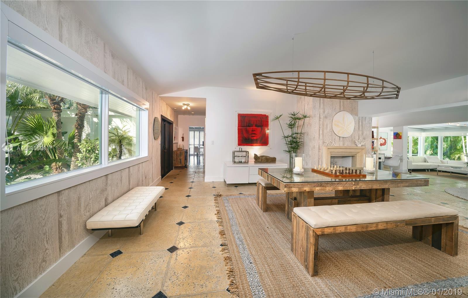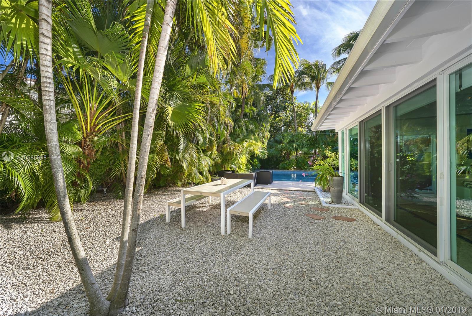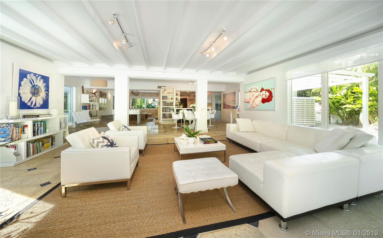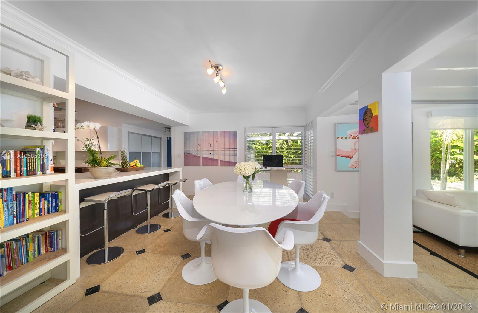 WALK TO THE BEACH ! perfect beach house. Saint Barth feeling all the way. Open kitchen, impact glass doors and windows. covered terrace by the pool adds space and a lot of charm to this island home. Two master suites. two additional bedrooms plus staff. two bedrooms overlooking pool area, one the largest bedroom has a little terrace for breakfast al fresco. Living room offers different areas of entertainment , formal dining, informal breakfast area, large and bright reception area overlooking pool and garden. You can walk or bike to the coffee shops, you can walk or bike to the beach. a dream of house.a real Key Biscayne home updated to perfection.
