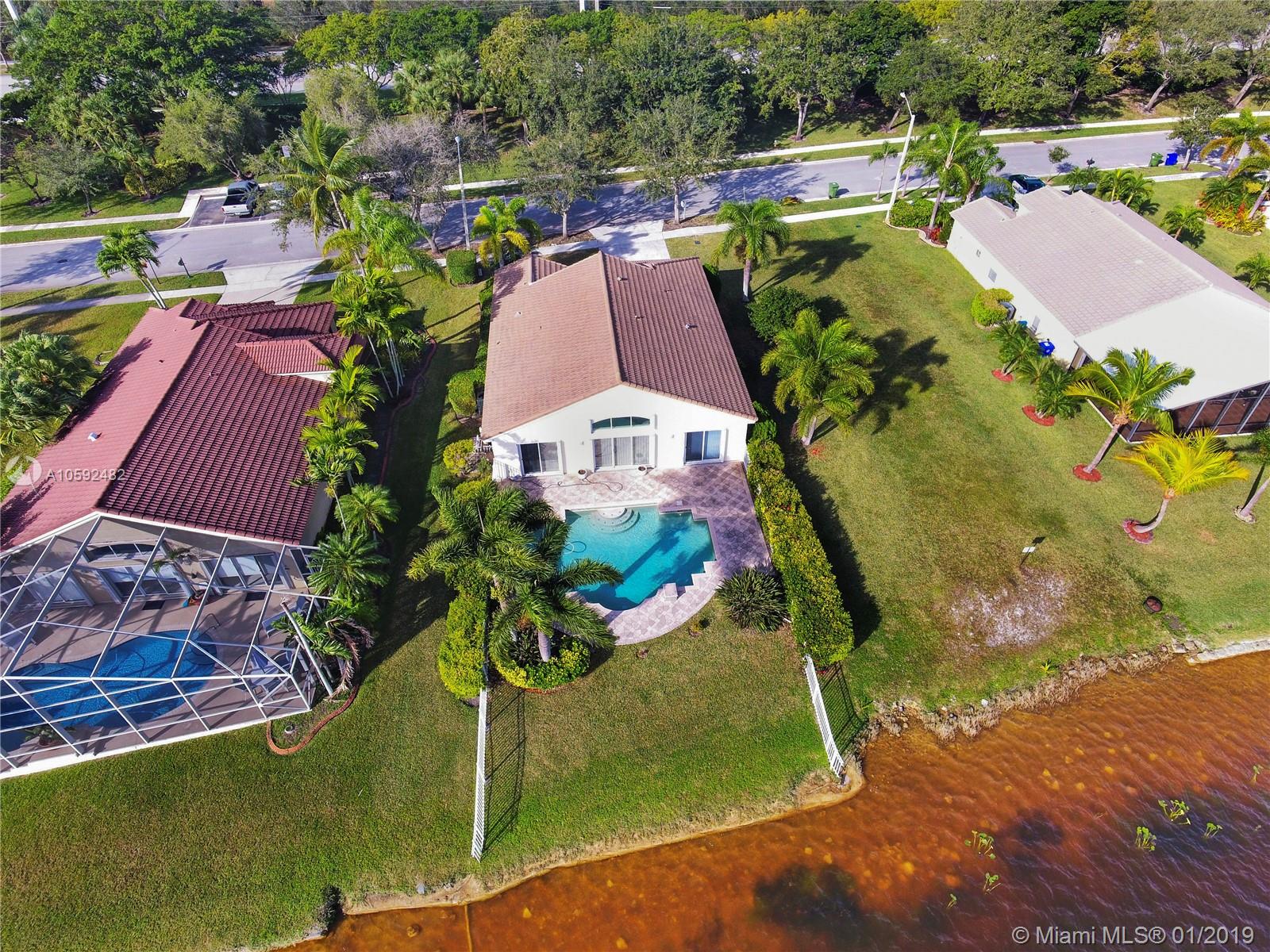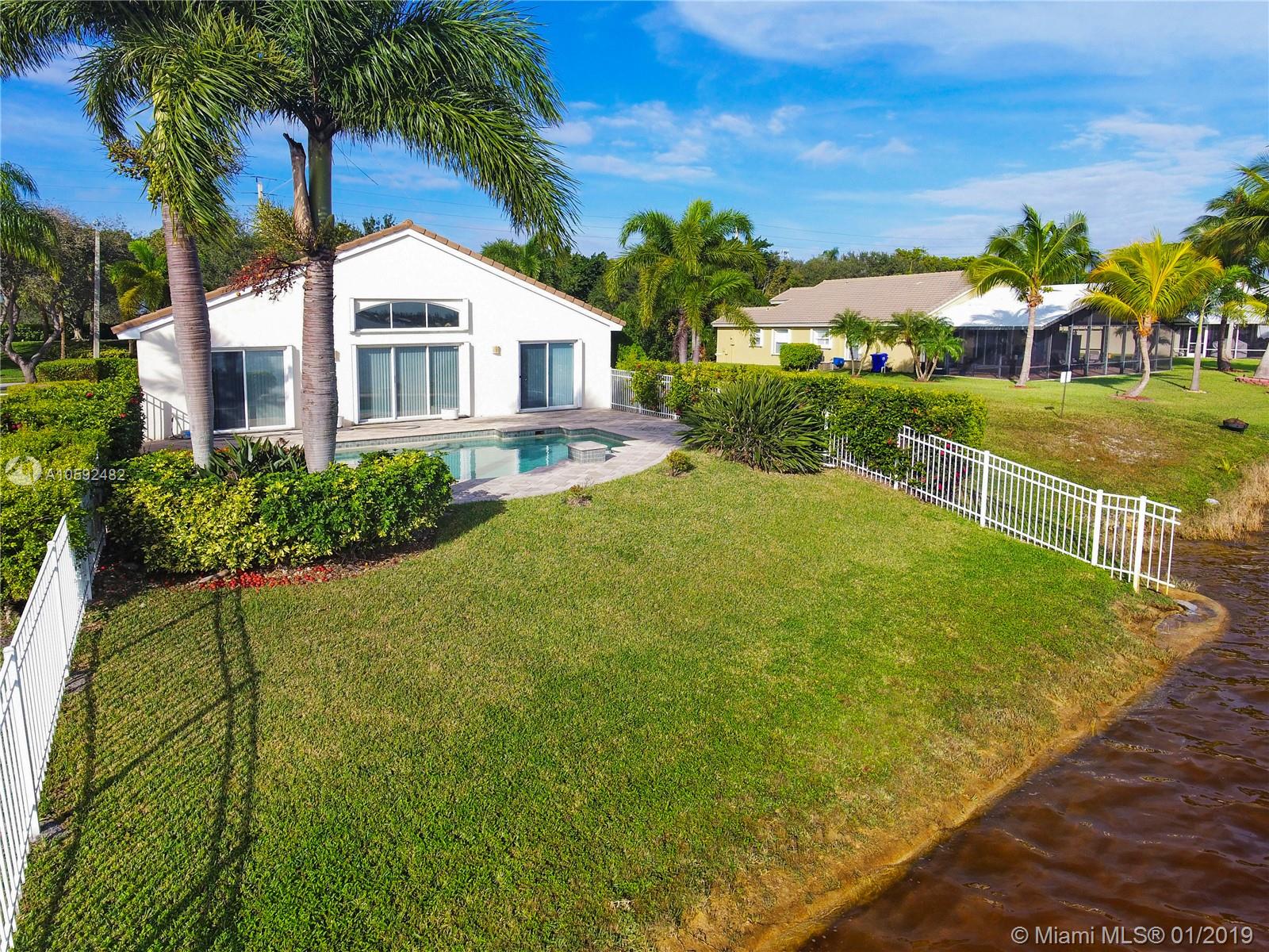 Gorgeous one-story large lake front/pool home with 3 bedrooms & 2 full bathrooms, split floor plan, separate dining & living room. Accordion Shutters. Lush landscaping. Keystone Lake is a gated community, 24 hrs security. Conveniently located in the west of Pembroke Pines area just minutes away from "A" rated schools, restaurants, shopping, theaters, parks & access to I75, HWY/27. Home is located near well care vacant lot. Locate in the most desirable view of the lake, sunrise & sunset are impressive view. must see