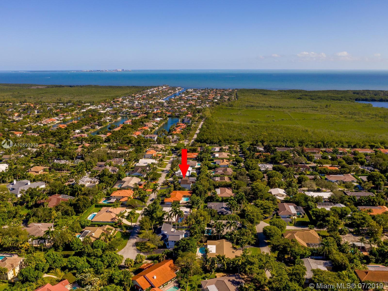 Impressively spacious 5 bd home on quiet tree-lined cul de sac in guard-gated Pinecrest by the Sea. Features include volume ceilings, ample open living areas, private 2nd flr master suite & 4/2.5 on the first floor, indoor laundry room, powder room, garage, on elevated 16k+ lot. Tropical fruit trees surround pool/covered patio for year-round fun. New impact windows, septic tank & drain field, 2010 Roof. Gables & Pinecrest by the Sea waterfront community off Biscayne Bay offers the finest in locally connected municipal services, top rated schools featuring 24/7 guard-gated entry & a wonderful yet voluntary HOA at only $200/year. Friendly 20mph streets, magnificent views of Biscayne Bay from Lugo Point, a park w/basketball, playground, green space, picnic area & gazebo. Truly Paradise!