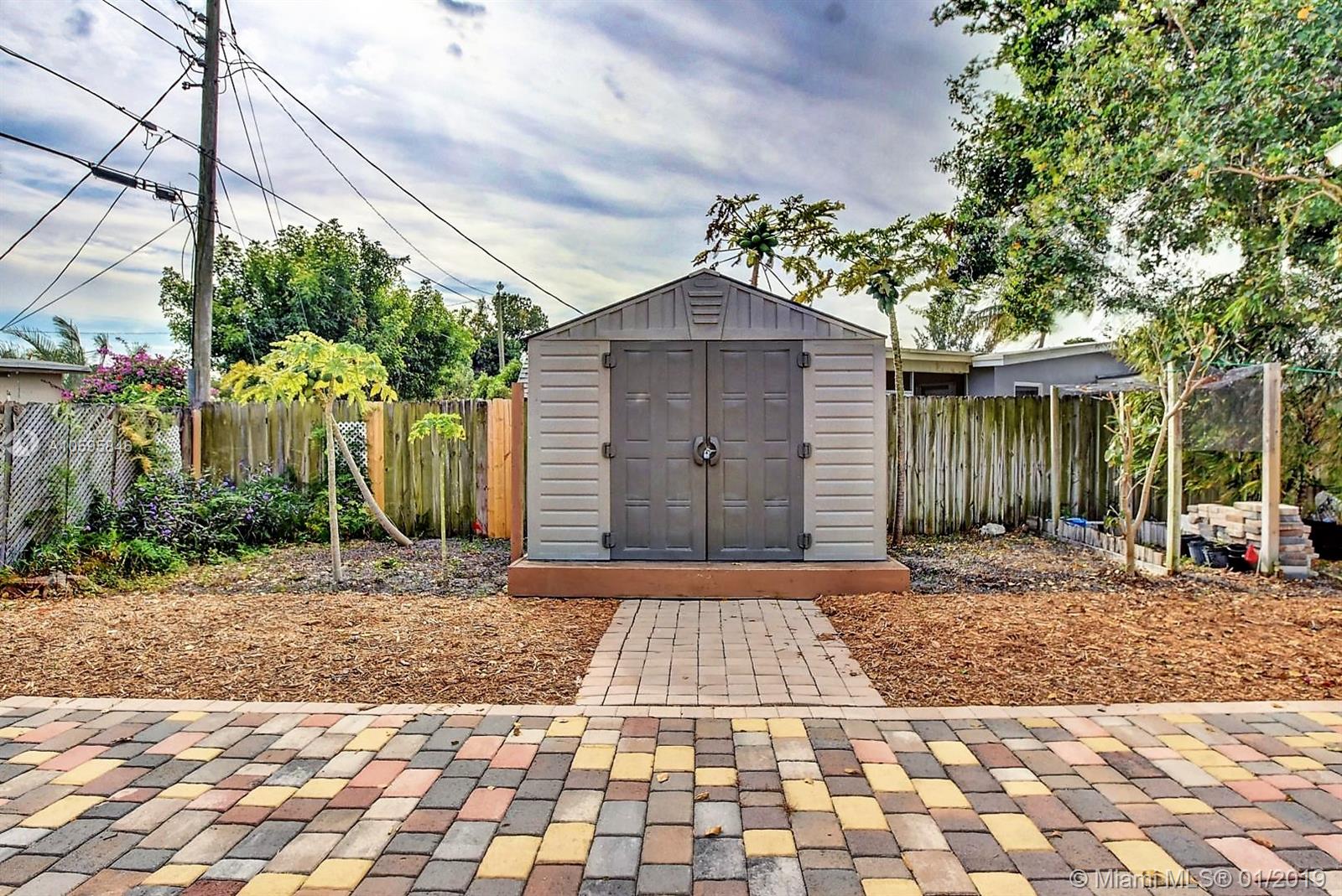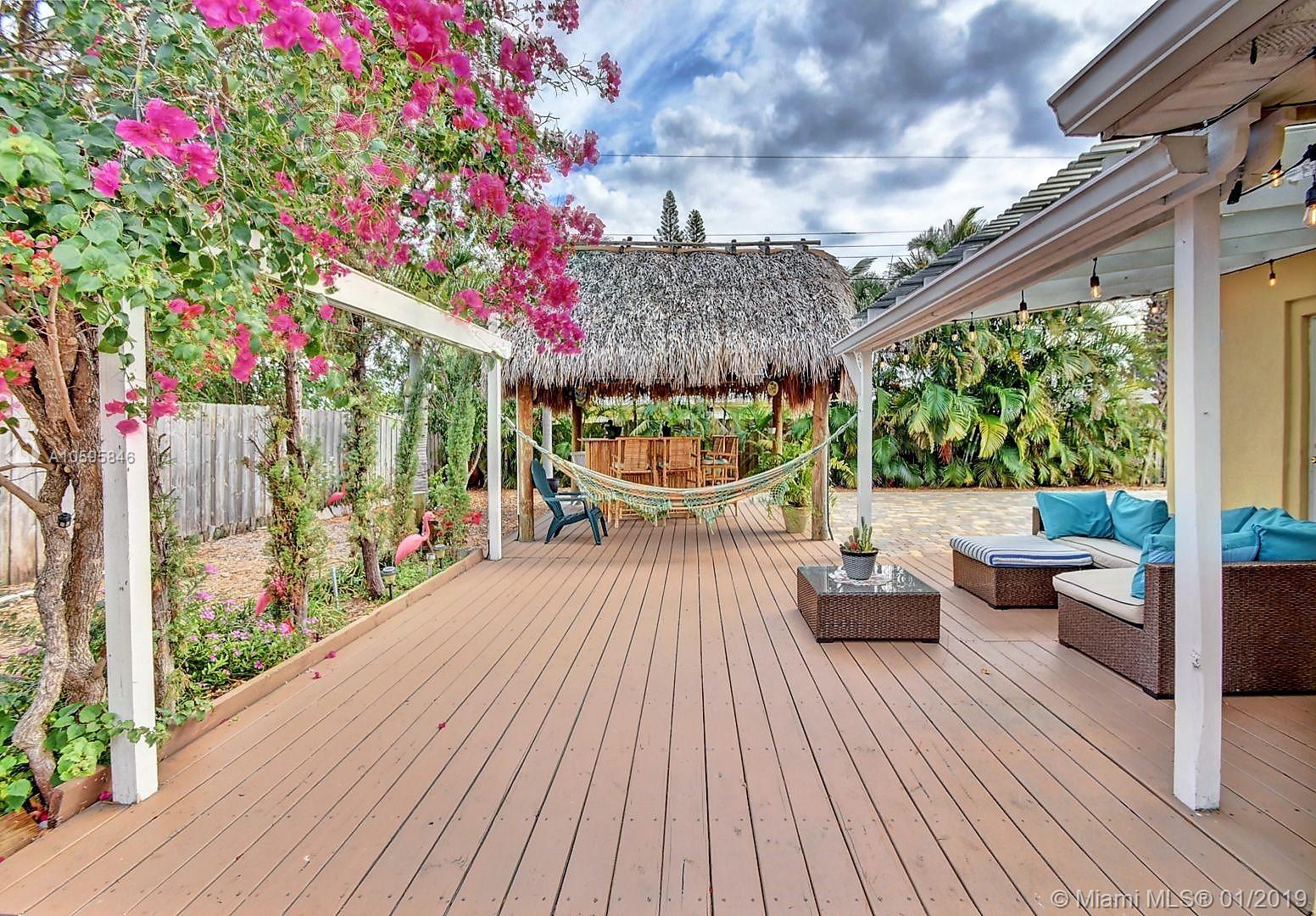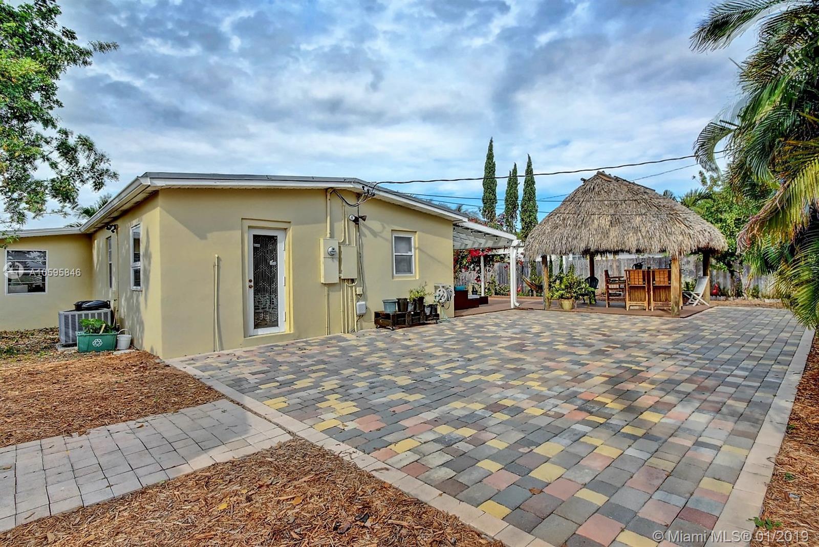 Cozy North Pompano Beach home. Remodeled kitchen and baths. Fresh painted. Great landscaped, featuring Tiki hut area with the Tropical South Florida life style. Covered back porch with pavers and mulched areas. Beautiful garden with fruit trees to enjoy. Large lot with space for boat or motor home. Spacious 1 car garage with electric door lift. Full size front load washer and dryer.