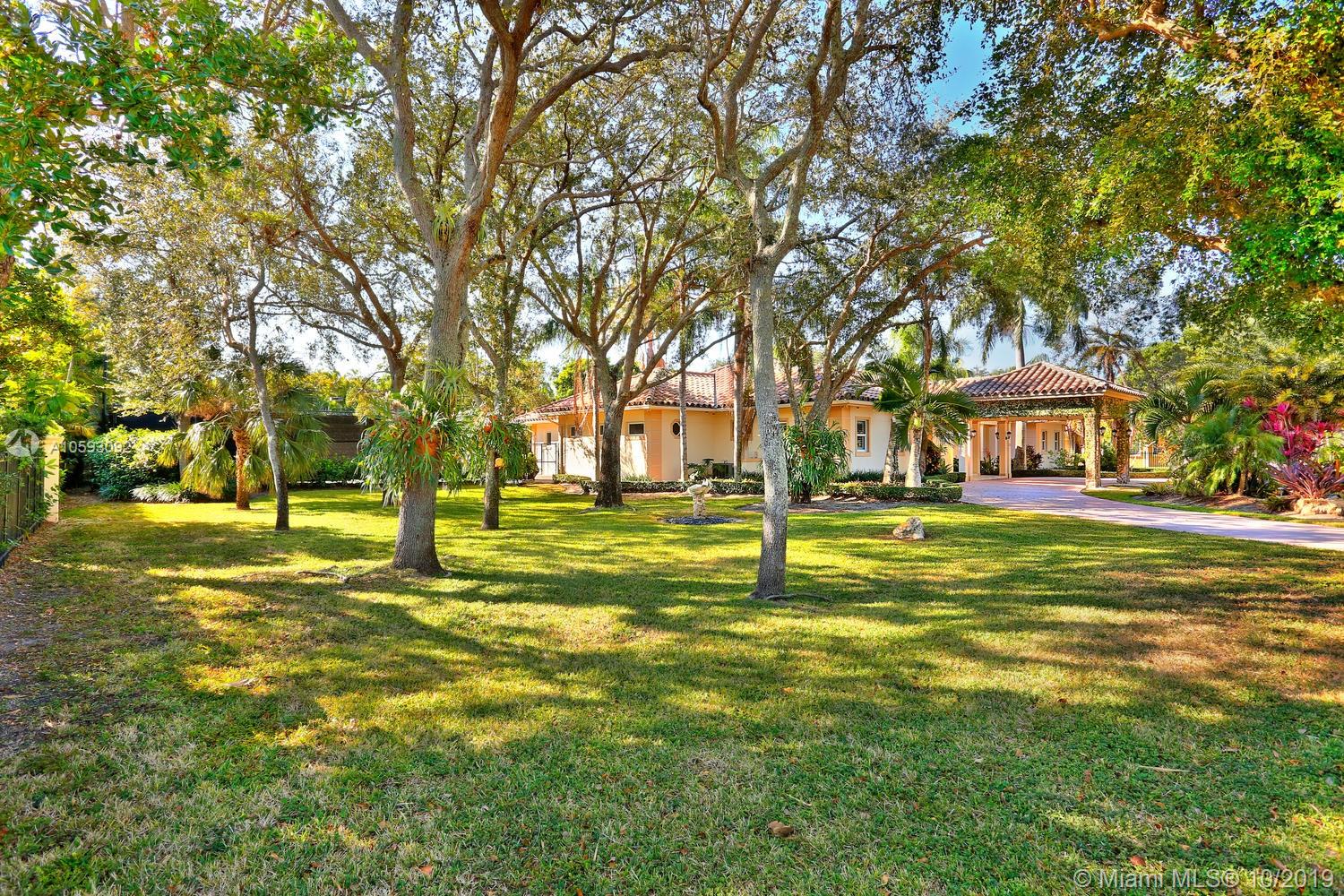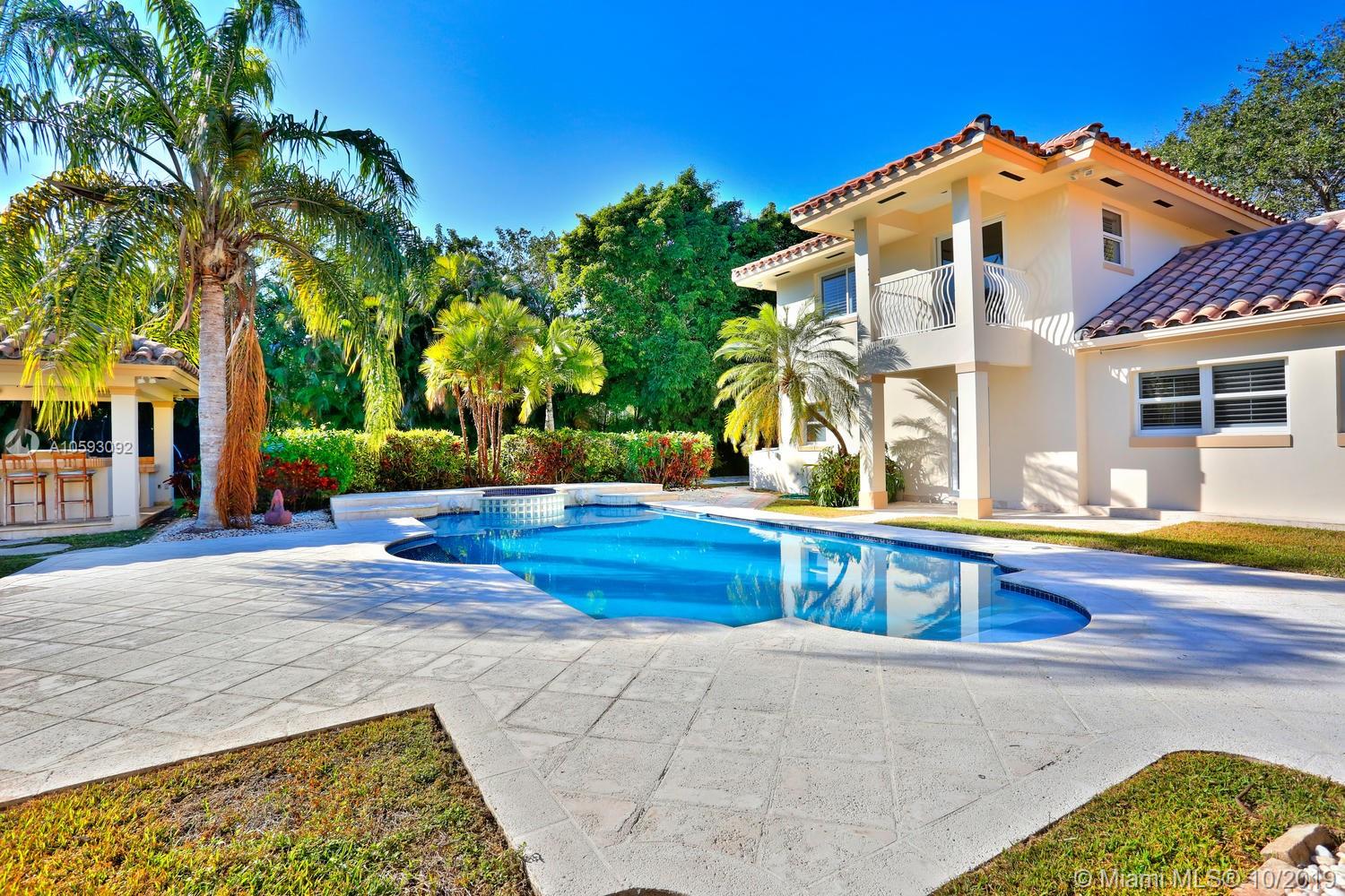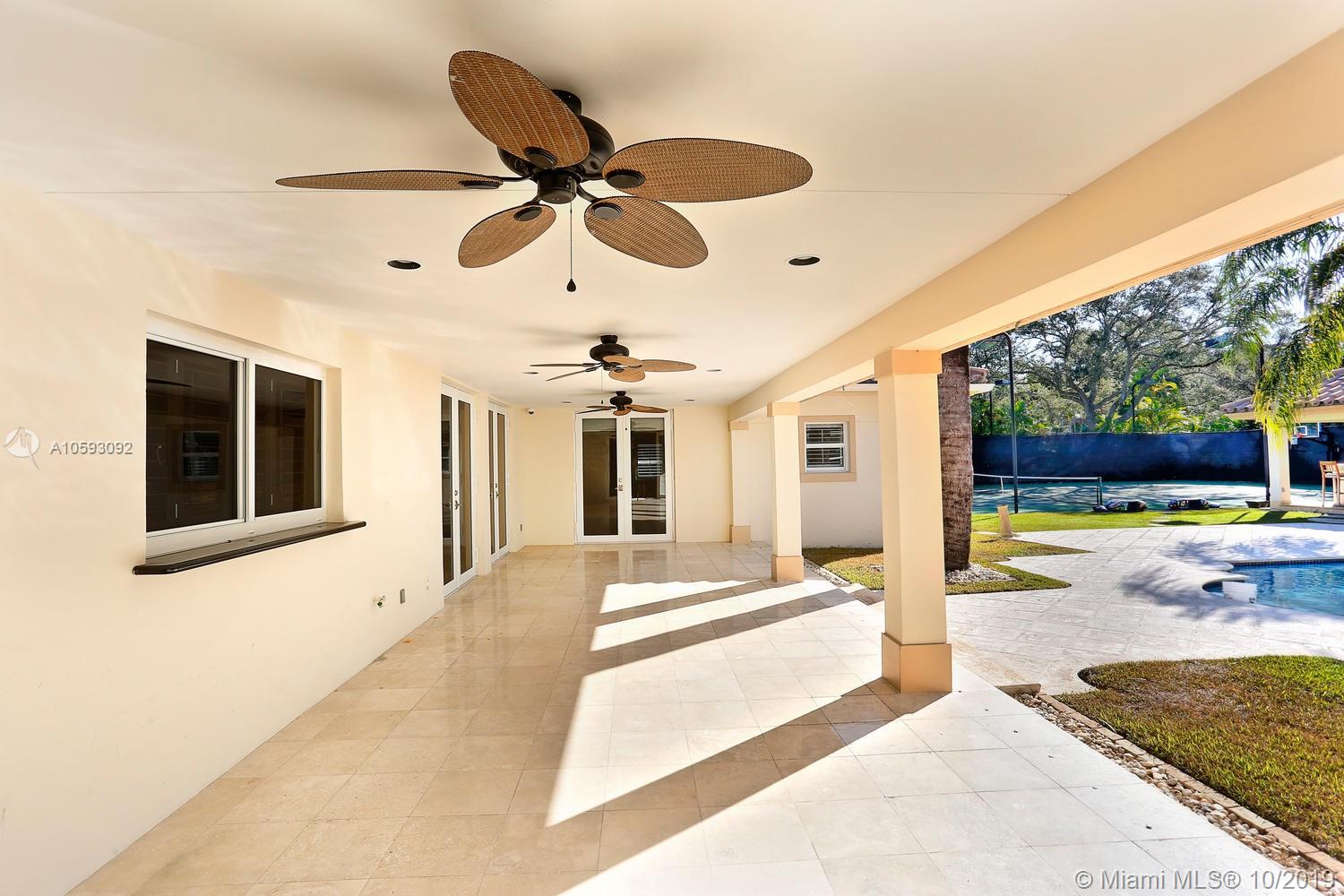 Gated Pinecrest estate featuring a lighted, N/S tennis court, basketball court, heated pool, spacious patio and gazebo. Quiet, no-traffic cul-de-sac street. Updated throughout - spectacular "cook's kitchen" w/quartz counters, natural wood cabinetry and stainless steel appliances. Adjacent to the kitchen is a large family room with a working fireplace. Neutral colors, marble floors throughout, 10' ceilings, LED lighting, impact glass doors/windows. Split bedroom plan with one bedroom currently used as an office w/built-in cabinetry. Master bedroom has separate sitting area overlooking pool/patio, lavish master bath and generous closets. Separate apartment above garage features wood floors, living/dining area, kitchen, bedroom and bath. Walk to Pinecrest Elementary. Vacant - Easy to show.