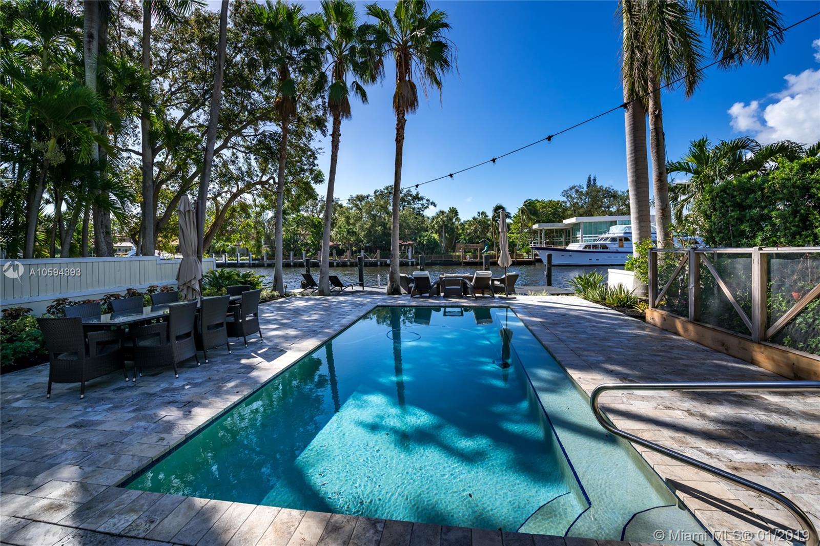 Highly desirable island style home is one of seven located directly on the New River and just steps to Las Olas shopping and dining. This gated 50’ x 226’ property offers 50 feet on the New River with updated pool, patio, seawall and dock. Fully updated 3 BR/2.5 BA main house features new appliances, wood floors, wood burning fireplace and wraparound porch plus a 1 BR/1 BA guest house and a 1 car garage. This highly desirable property is also well suited for new construction and priced at land value.