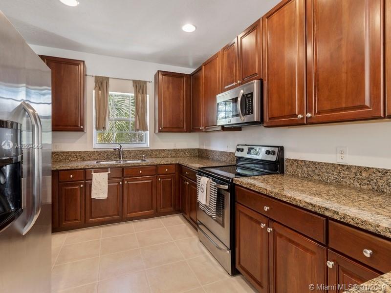 This beautiful split level home is situated in a family friendly neighborhood known for its excellent schools and ease of access to the highway. It is within walking distance from the gym, pool, and guest parking. Upgraded wood tile flooring in the upstairs living and dining areas with a sizeable kitchen space are perfect for entertaining or having a family meal. Upstairs has a master bathroom with completely refinished cabinets as well as an upgraded half bathroom. Downstairs has a versatile living area perfect for a kids' play room or home theater, as well as 2 rooms that can be bedrooms or office space and an upgraded full bathroom. Equipped with accordion shutters and a WiFi alarm system.