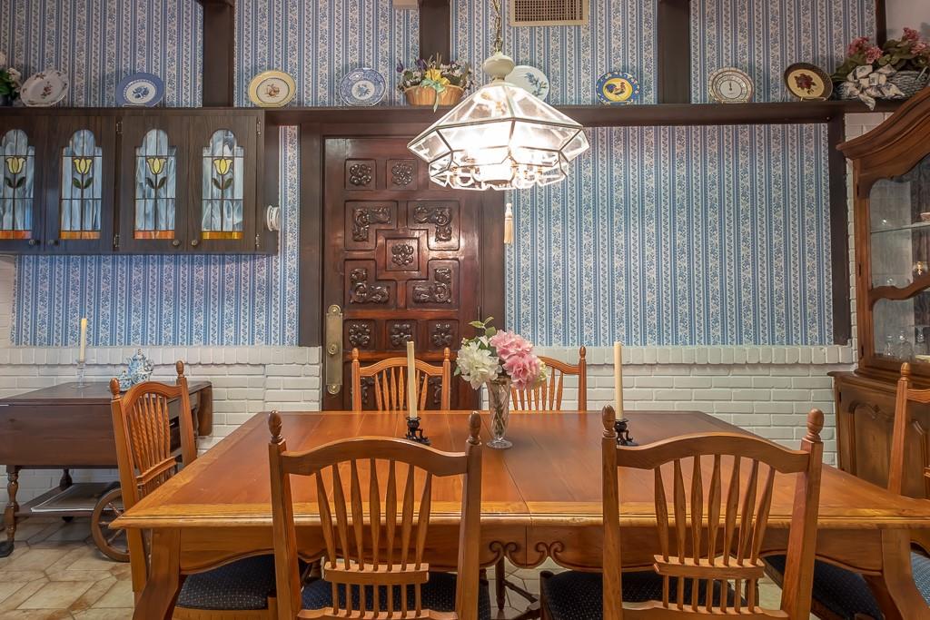 • Característica Interior:BedroomonMainLevel, EntranceFoyer, EatinKitchen, FirstFloorEntry, Fireplace, HighCeilings, KitchenDiningCombo, MainLevelMaster, SplitBedrooms, VaultedCeilings, BayWindow, Workshop