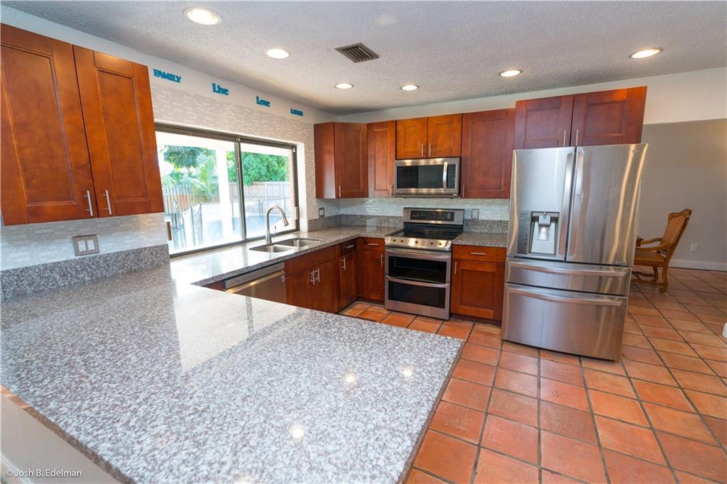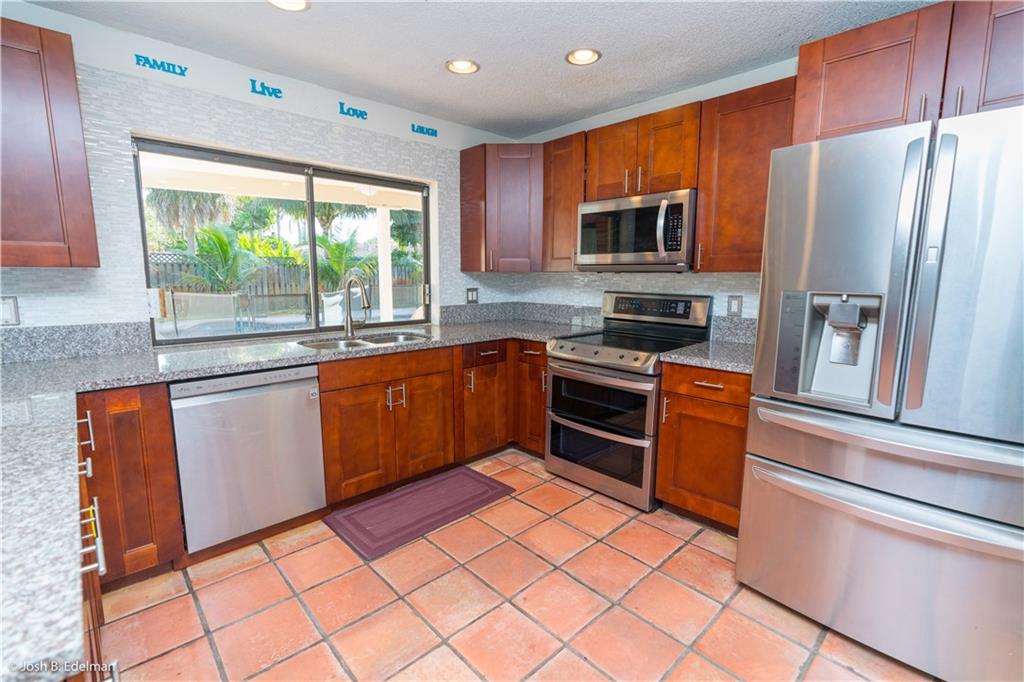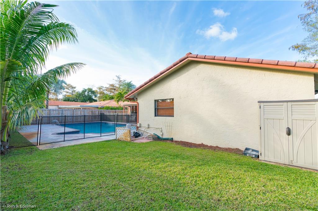 *Home Warranty to the Buyer!* Spacious 4 bed 2.5 bath Country Wood Estates home (Ramblewood). Split bedroom plan, all bedrooms have walk-in closets & updated baths. Open concept design ~ great for entertaining! Remodeled kitchen with stainless steel appliances & granite counters, eat-in kitchen with pantry. Fully fenced backyard with 20 x 40 tropical pool & spa; brand new child safety fence. Spacious stamped concrete patio w/brick fireplace. Brand new hurricane shutters, new impact cabana door & new pull down attic stairs in garage. Flat roof 3 yrs new. Interior large laundry room; sprinkler system runs on well. No HOA! Walk a block to Countrywood Park & playground. Schools: Ramblewood ES, Ramblewood MS & Taravella HS.