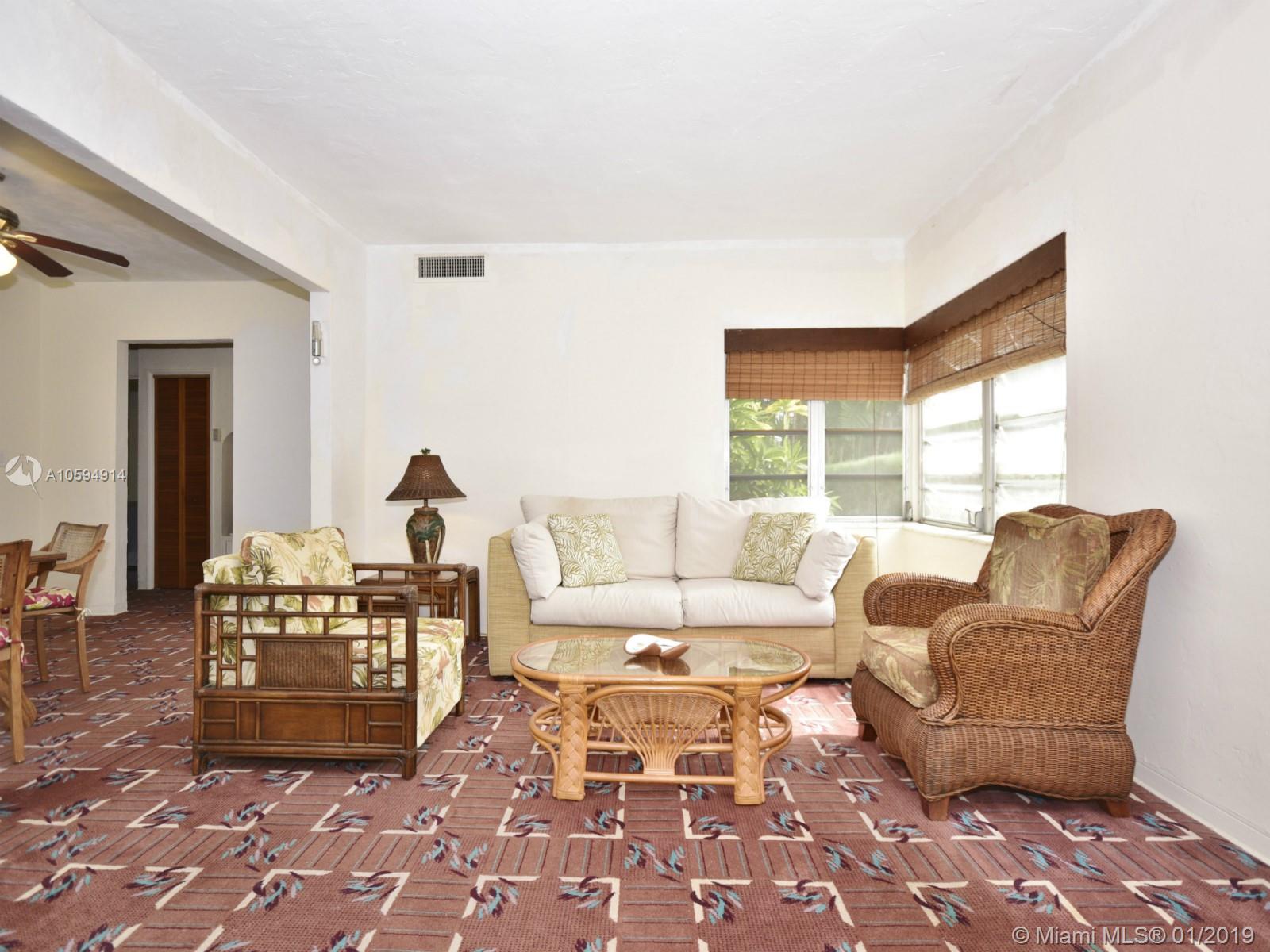 South Beach meets Surfside! This pre-war art deco treasure has been owned by the same family for 36 years, and is in original condition. Dripping in charm, you will feel like you are in a SOBE art deco resort. Features include an over sized detached 2 car garage, adorable SOBE style courtyard, glass bricks and large picture windows, spacious living room with an art deco corner fireplace, rare circular dining room, original deco bathrooms and light fixtures, lots of windows and natural light. The main house is a 2/2. The garage has a 1/1 guest room plus an additional 400 sf. of storage. Note, the garage is partially converted and can be an enormous master suite. Updated, this gem would be one of Surfside's most exquisite homes. Easy to show.