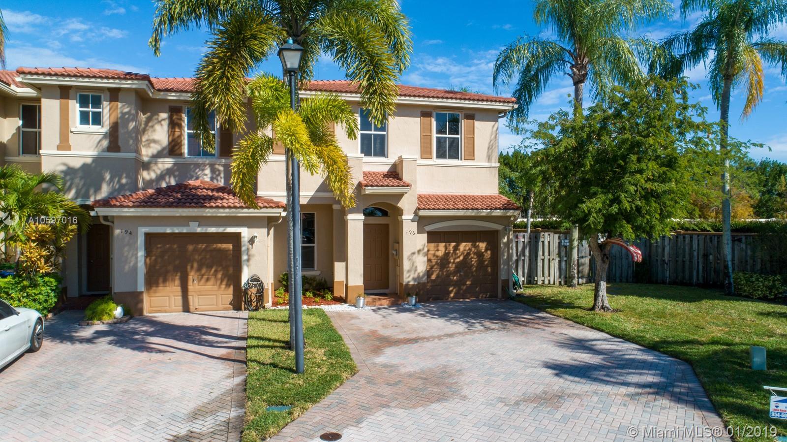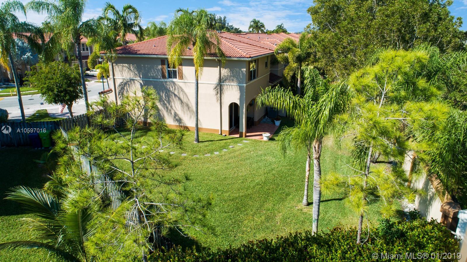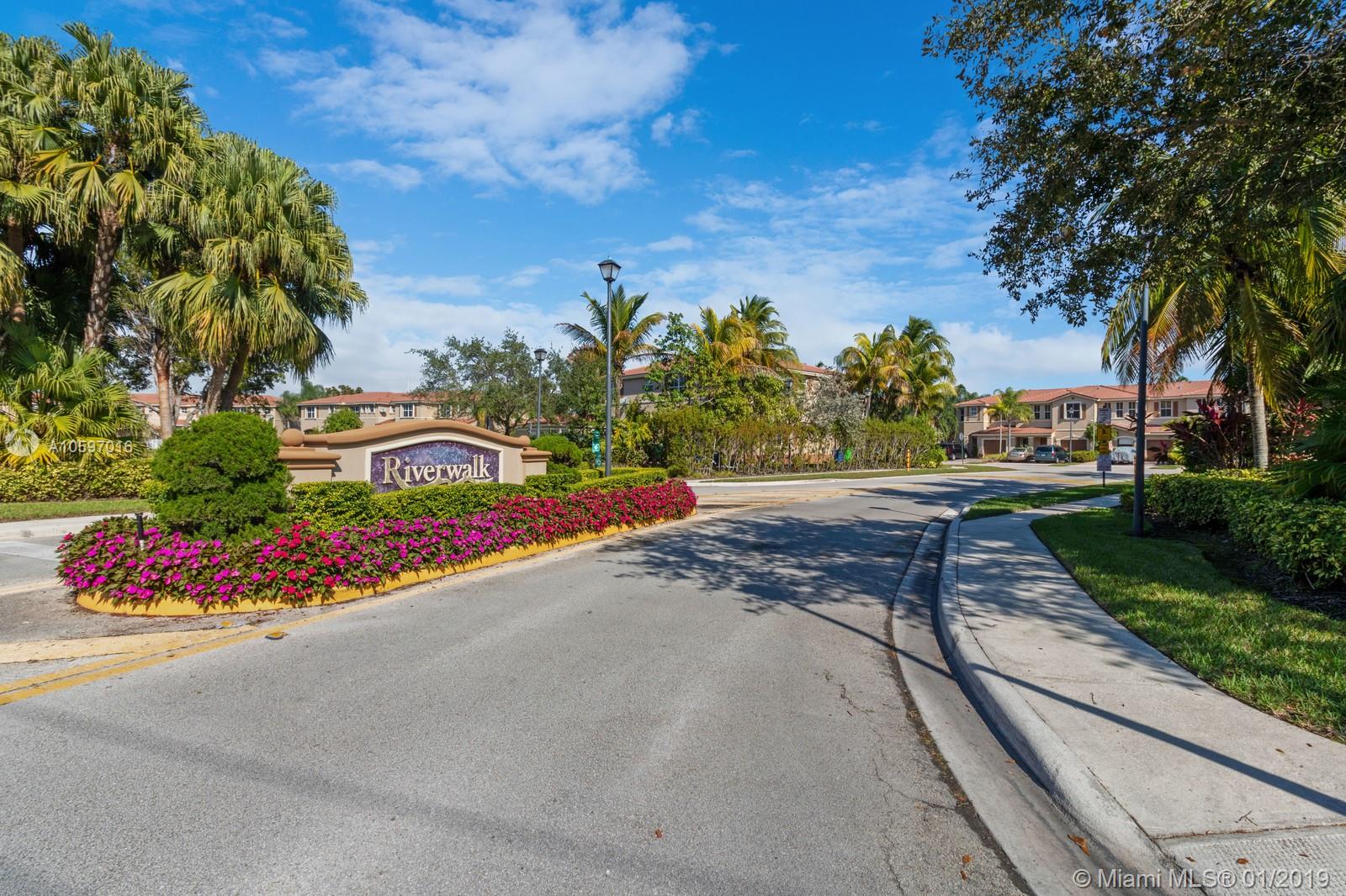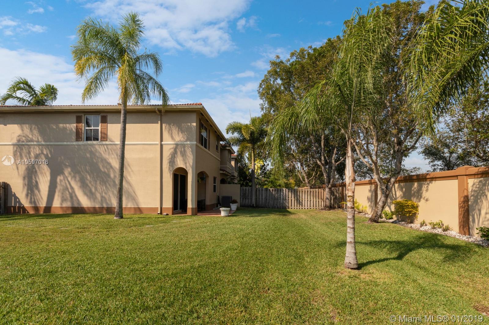 Spacious immaculate corner unit, 4 bed/3bath townhouse with one-car garage in the desirable community of Riverwalk (bordering Weston/Sunrise) in Sunrise. Unit features oversized fenced yard (rare in a townhouse) ideal for family fun and entertaining, One bedroom and full bath on ground level, spacious bedrooms, completely tiled on first floor, high-efficiency newer A/C, newer water heater, newer washer and dryer. Conveniently located near major highways and shopping galore. A+ schools! Will not last!