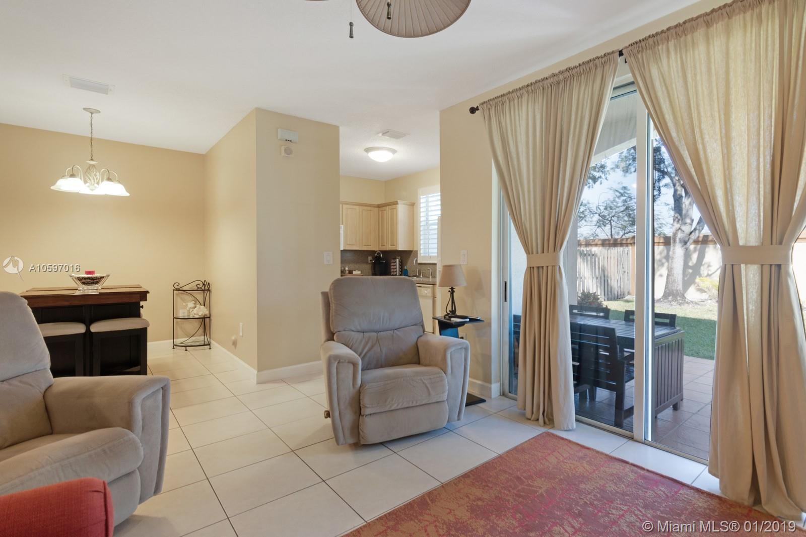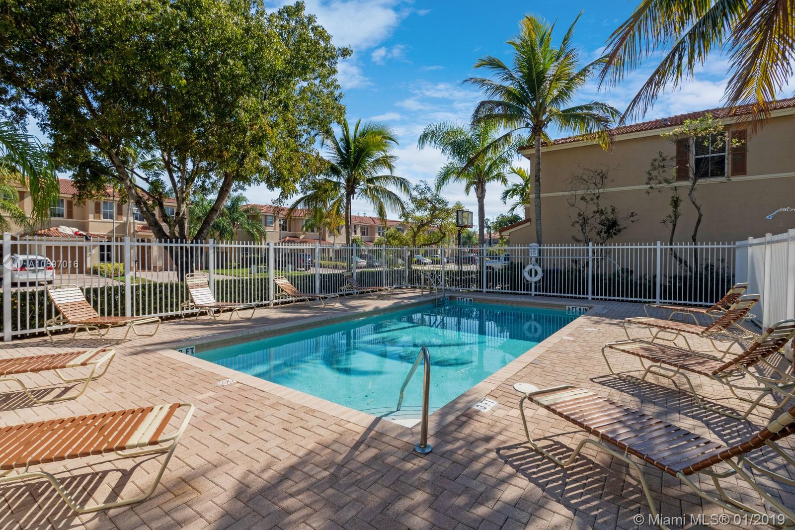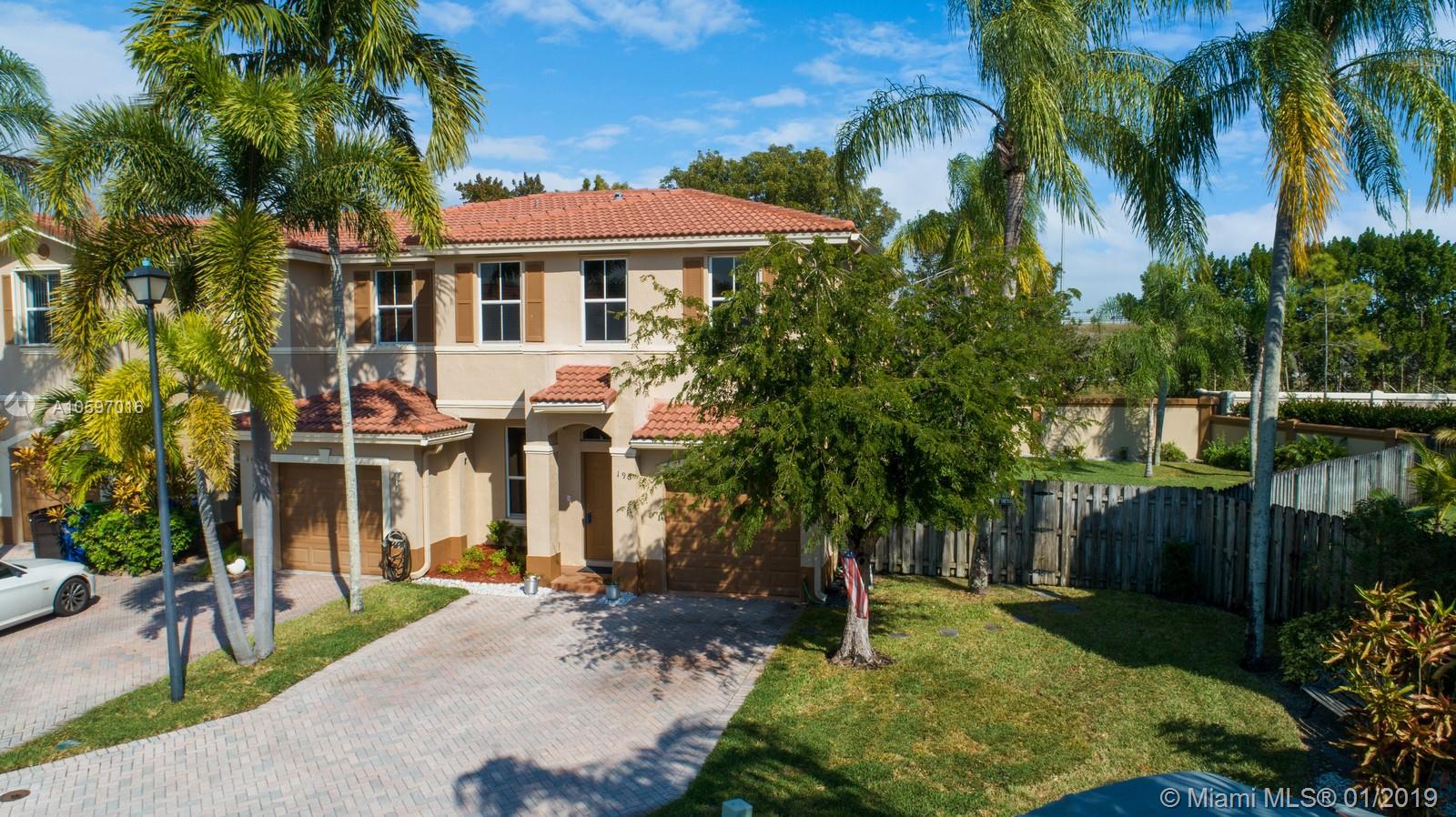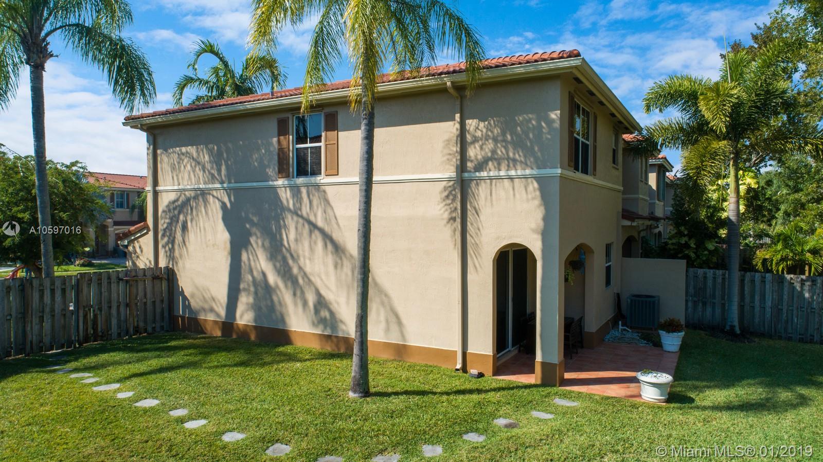 Spacious immaculate corner unit, 4 bed/3bath townhouse with one-car garage in the desirable community of Riverwalk (bordering Weston/Sunrise) in Sunrise. Unit features oversized fenced yard (rare in a townhouse) ideal for family fun and entertaining, One bedroom and full bath on ground level, spacious bedrooms, completely tiled on first floor, high-efficiency newer A/C, newer water heater, newer washer and dryer. Conveniently located near major highways and shopping galore. A+ schools! Will not last!