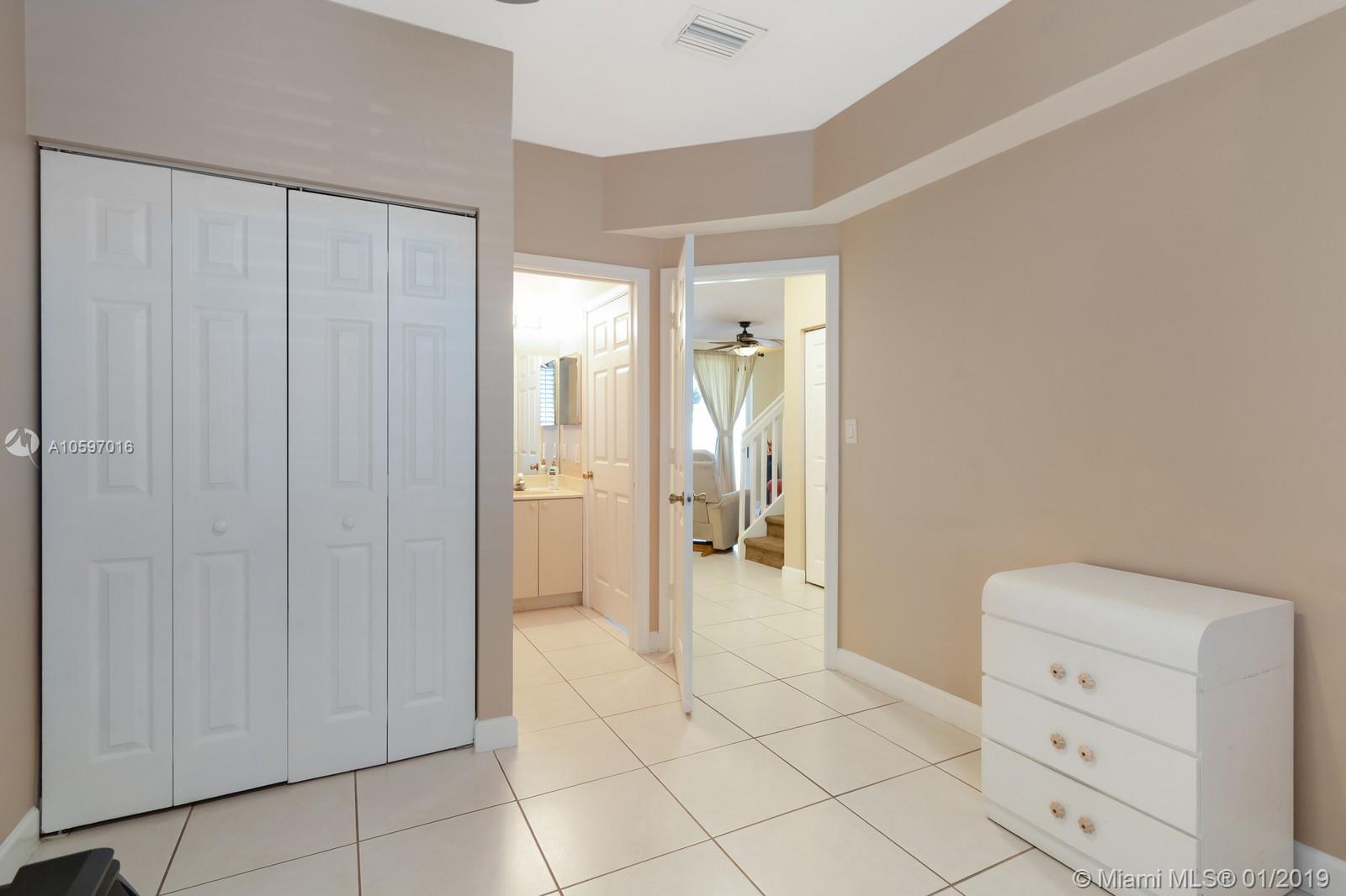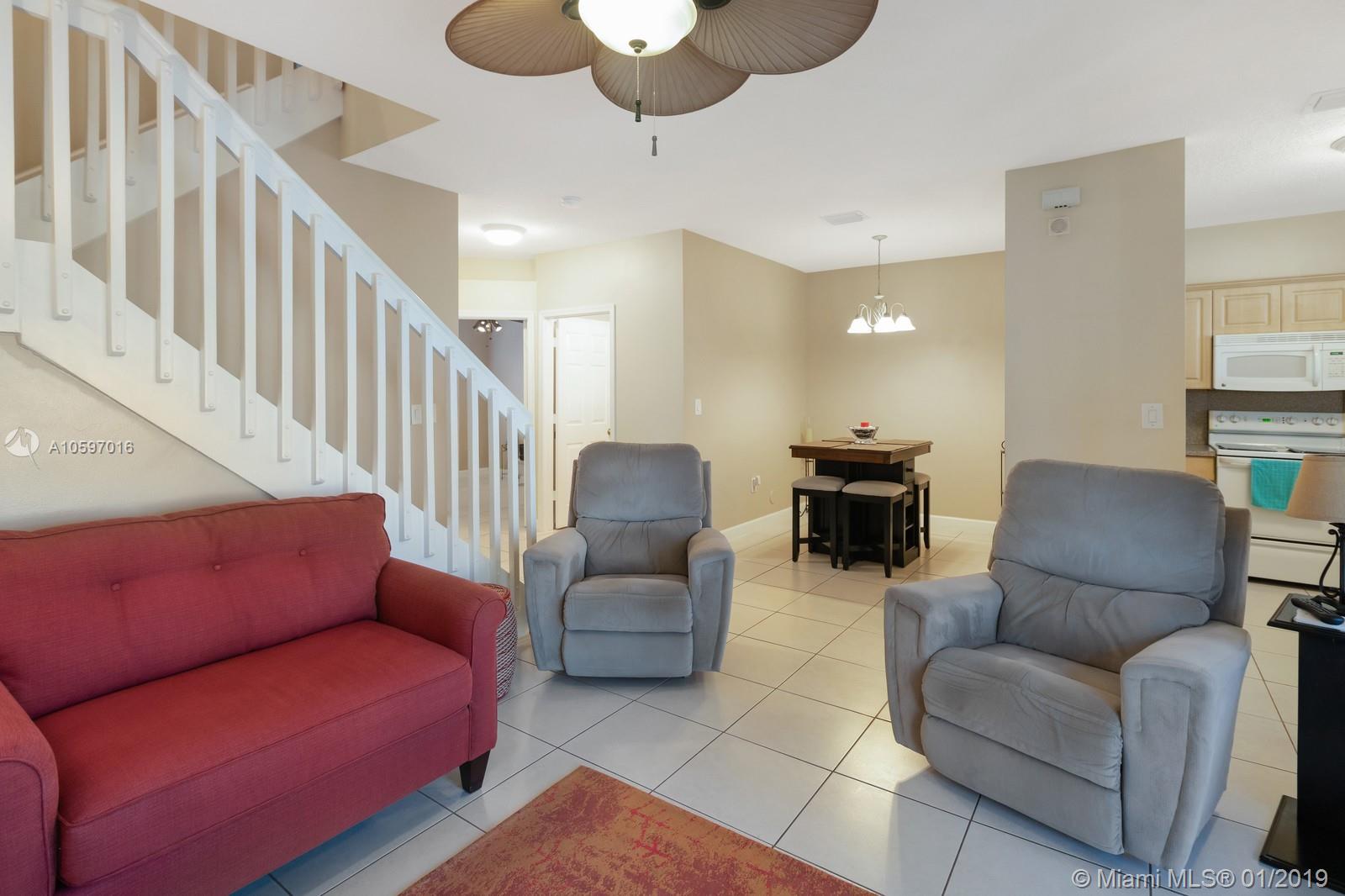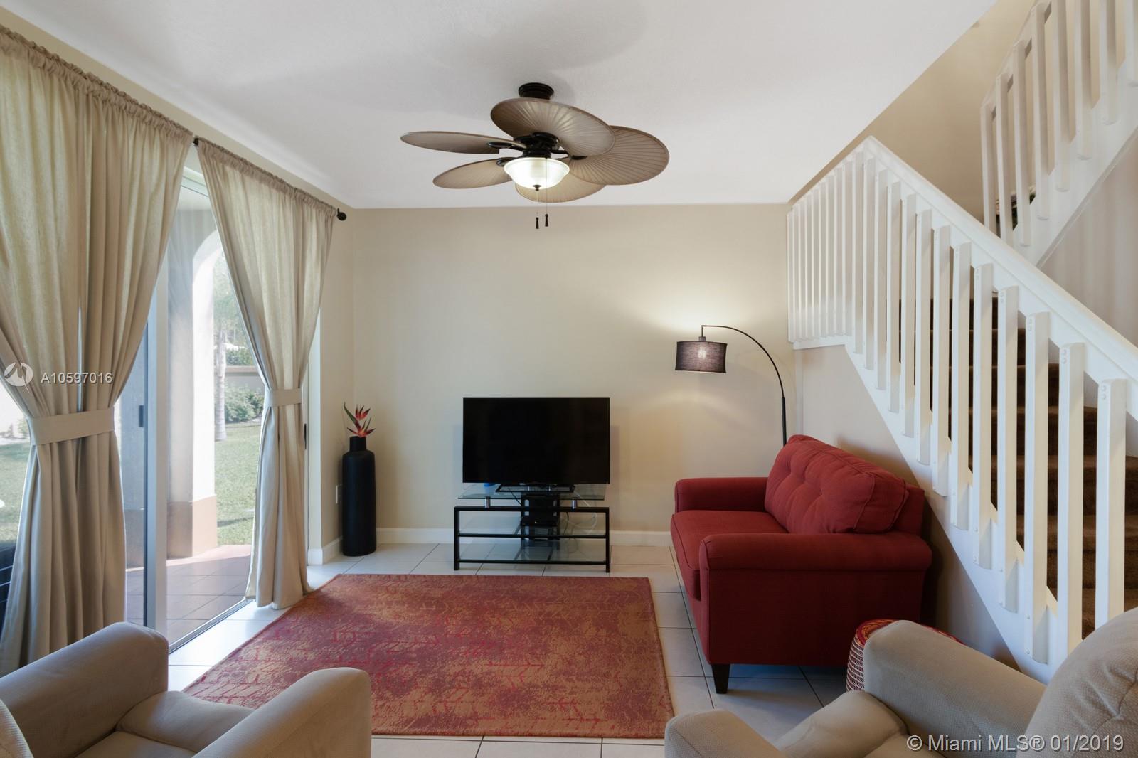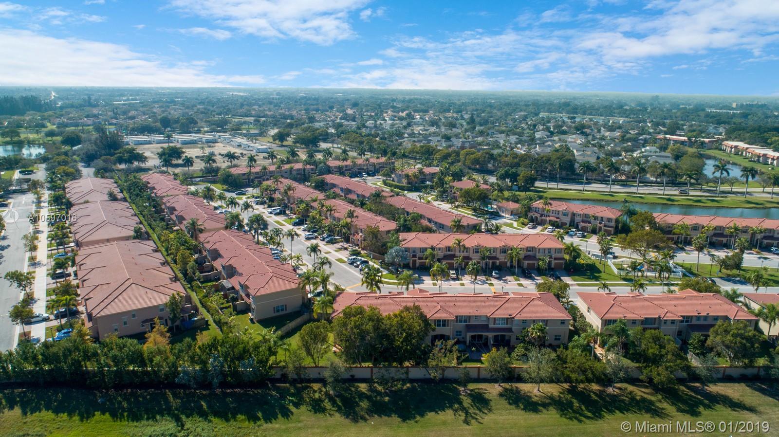 Spacious immaculate corner unit, 4 bed/3bath townhouse with one-car garage in the desirable community of Riverwalk (bordering Weston/Sunrise) in Sunrise. Unit features oversized fenced yard (rare in a townhouse) ideal for family fun and entertaining, One bedroom and full bath on ground level, spacious bedrooms, completely tiled on first floor, high-efficiency newer A/C, newer water heater, newer washer and dryer. Conveniently located near major highways and shopping galore. A+ schools! Will not last!