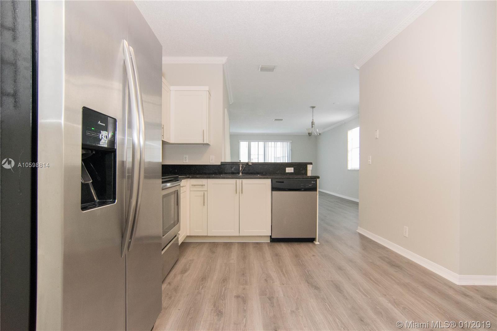 Ready to move San Simeon townhome. Brand new laminated on the first floor and brand new modern carpet on the second floor. Beautiful kitchen with granite counter top and stainless steel appliances. The unit has been freshly painted. Great community near to the most desirable schools in Broward County. You will love it!