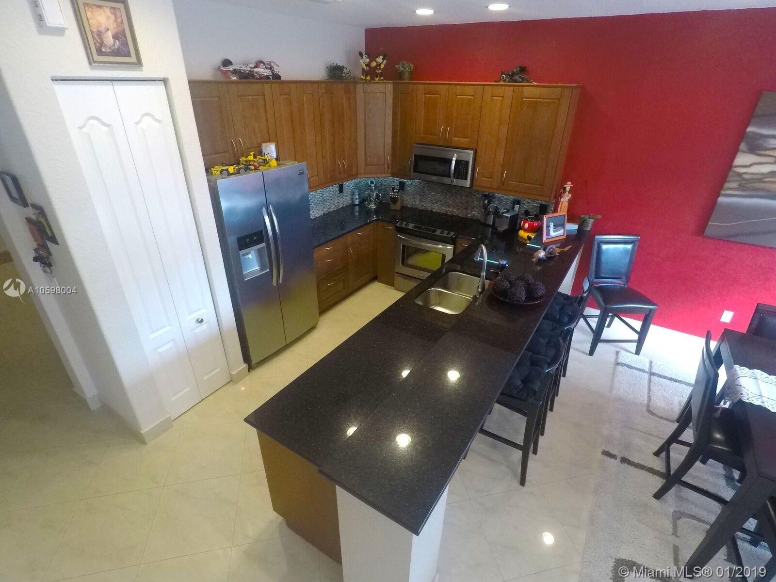 Updated and move-in ready! 2BD-2.5Bth water view townhome in Cobblestone (Pembroke Pines). This home has new kitchen cabinets, backsplash, granite counter top, stainless steel appliances. New washer and dryer. Freshly painted outside. Wood flooring in entire second story, and ceramic tile in entire first story. Master bedroom features a spacious walk-in closet and balcony overlooking the lake. Master bathroom features a new frameless shower door, new tile and shower, new cabinets and granite countertop. Covered front porch overlooking the lake, patio and 2-car paved driveway. Gated community, roving security, close to malls and I-75. HOA fees INCLUDE house alarm system, Comcast cable, HBO channel lineup, DVR, Modem/Router, and high speed internet.