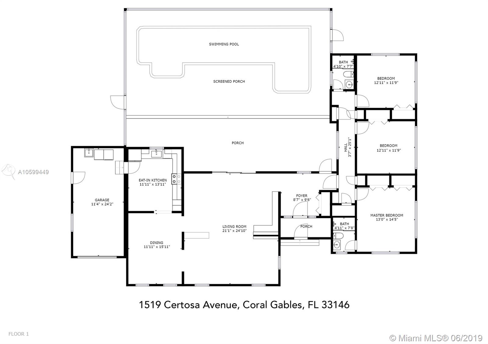 Opportunity to purchase this 3 bedroom 2 bathroom lovingly maintained home set on a double lot on an ideal tree-lined Coral Gables street. Home is in original condition with a great floorplan, large open living spaces, high ceilings, large terrace and screened-in patio & pool. Central to South Miami shops & restaurants and walking distance to the University of Miami. 1 car garage. Enormous potential!