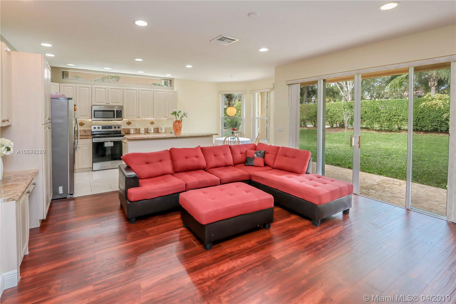A must see!!! This Beautiful Home with 4 Beds + Den (can be converted to a 5th room easily) with sliding door to Balcony & 3 Bathrooms. Located in a very nice Resort Style Gated Community @ Riviera Isles with Pool, Gym, Tennis & Basketball Courts. 1 Full Bedroom & Bathroom downstairs, not the Master. Upgraded Kitchen with Granite Countertops, Backsplash with Lighting, Island & Stainless Steel Appliances. No Neighbors in the back. Roof 2003. New Paint Inside & Outside of the House. New Landscaping. New Wood Laminate Floors 1st & 2nd Floor. Walking distance to Middle & High School. Original Owner. Association Management at Clubhouse. Buyer doesn't need to be pre-approved by the Association.