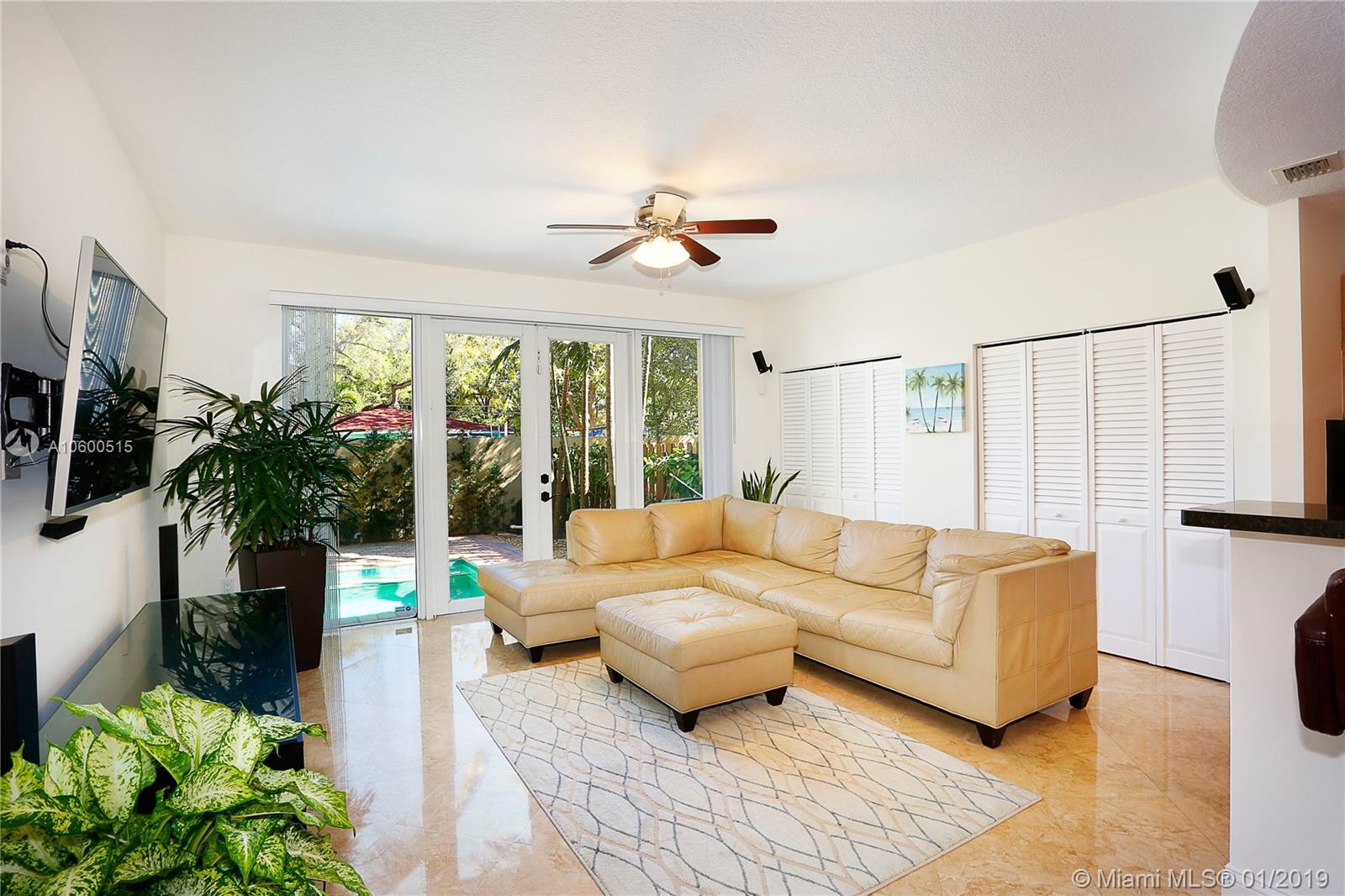 Walk to the Grove village center’s galleries, boutiques, cafes and bayfront parks & marinas. Lovely, gated townhome with light-filled open living spaces that feature travertine flooring throughout. Built in 2006 with: impact doors & windows, 2nd level washer/dryer and custom kitchen that features wood cabinetry, granite countertops & stainless appliances. Oversized master suite includes closet with custom built-ins, large balcony and luxurious marble bath with Jacuzzi tub. Enjoy year-round outdoor living in the private garden with lush landscaping surrounding a tropical pool. Minutes to downtown, MIA, Coral Gables and the Beaches.