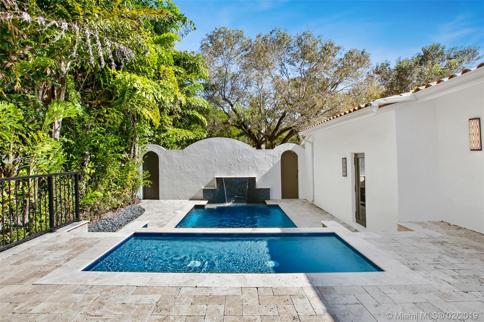 Stately, Spanish-inspired home on a gated corner lot in one of Coral Gables’s most desirable pocket neighborhoods. Boasting a crisp modern aesthetic, this gorgeous residence was rebuilt from the ground up in 2013 w/all-new construction, appointments, amenities & finishes. Features include custom solid mahogany front door, glamorous staircase, solid hardwood floors, 2 fireplaces & impact doors/windows. Indoor/outdoor luxe SoFla living: Flowing, light-flooded interiors, extraordinary gourmet kitchen w/top-tier appliances & gas range, sumptuous baths w/Porcelonosa vanities, serene Master w/private balcony, saltwater Pool w/waterfall & sunning area. Short walks to Merrie Christmas & Ingraham parks; mere minutes to downtown Gables, Grove, SoMi, Airport & more.