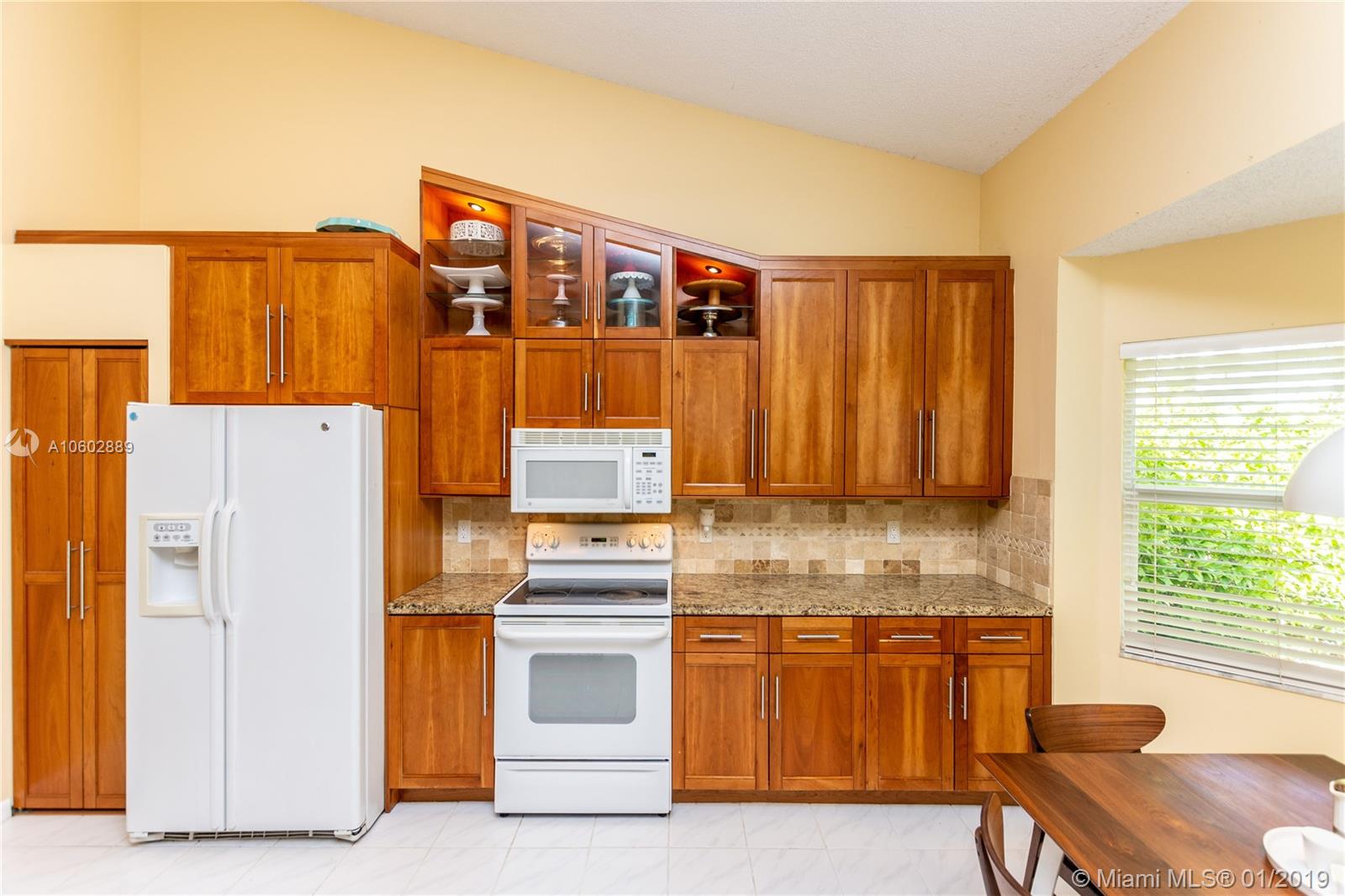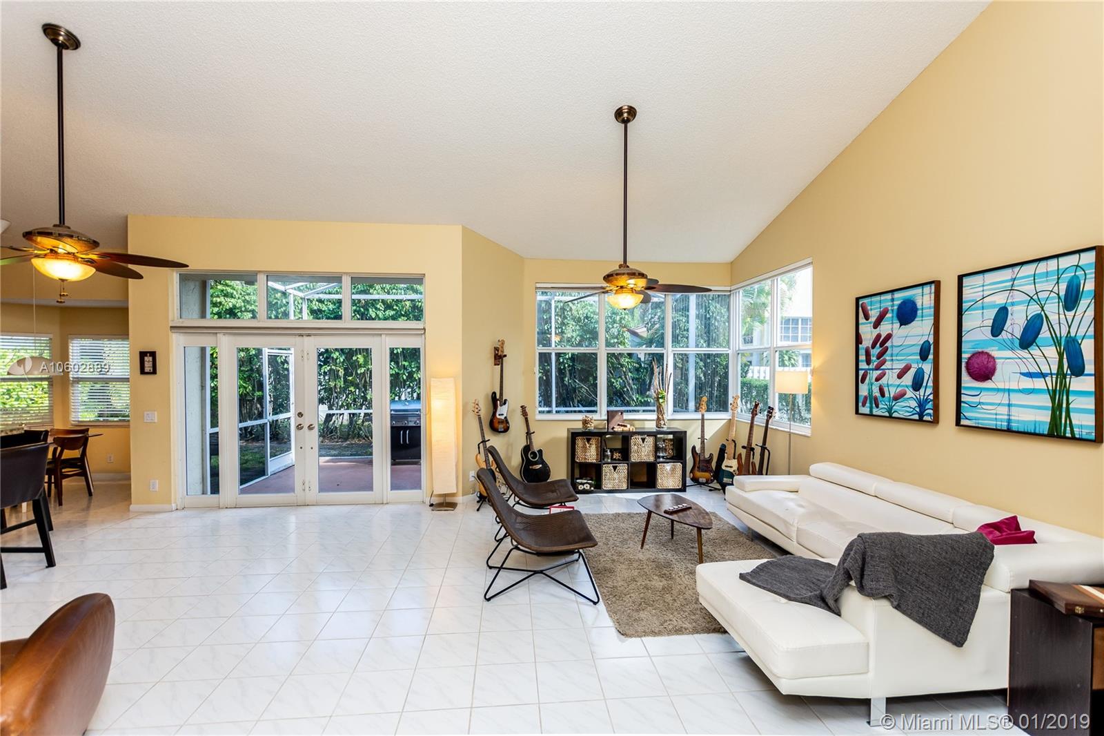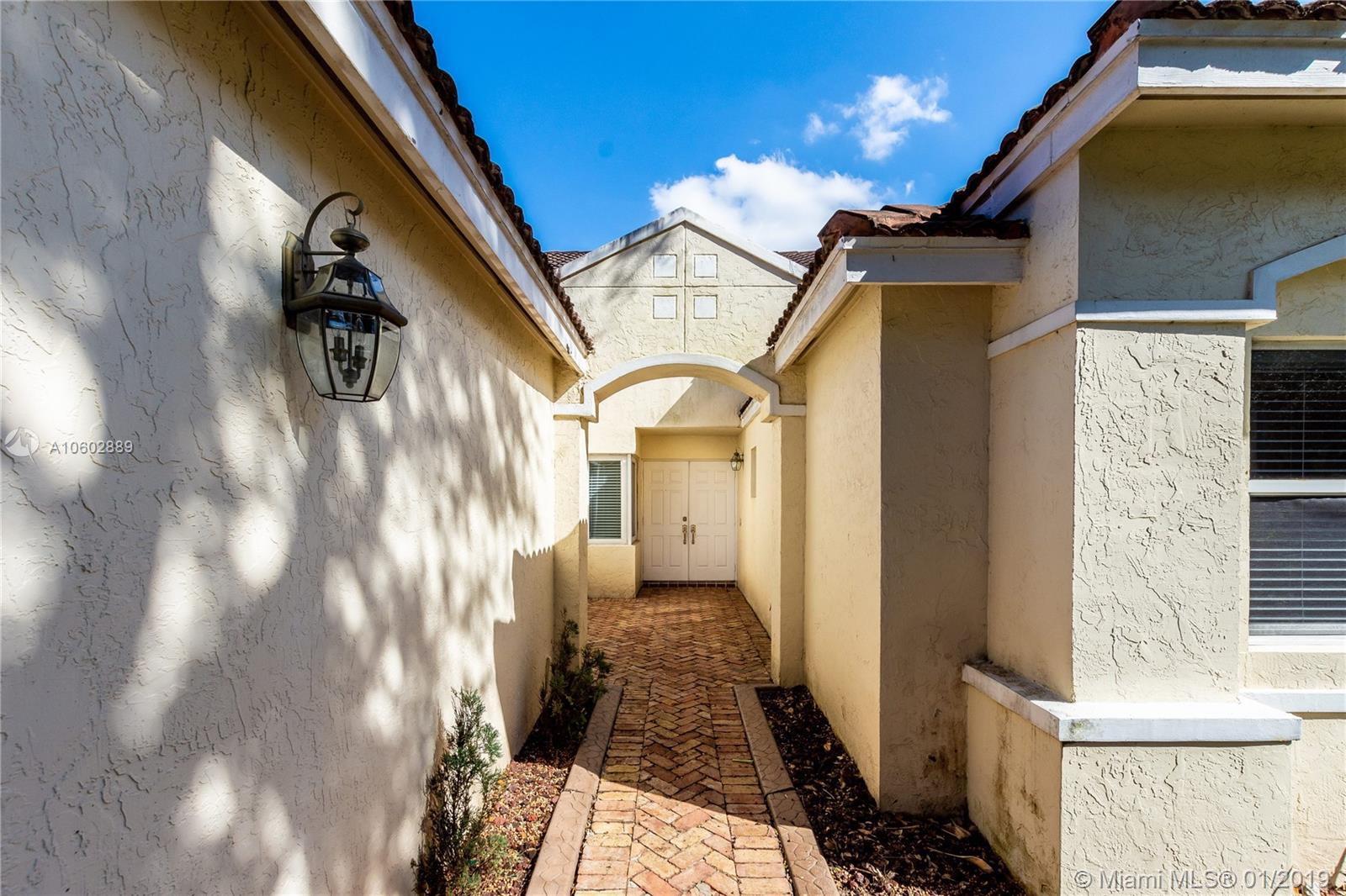 Take a look at this beautiful one story that is nestled in Hibiscus Island consisting of only 116 homes! Here in Weston's perfectly placed, gated neighborhood, you will find canopied, tree lined streets, a welcoming pool & playground, & THIS 3 bedroom, 2 bath gem complete with impact windows. This bright sun-kissed home welcomes you the minute you walk in with it's vaulted ceilings and open concept living. Plenty of granite counter space, breakfast bar & solid wood cabinets make this kitchen a dream! The split bedroom floorplan offers just the right amount of privacy. The master bedroom is generous in size w/ a walk in closet, master bath w/ double vanity, & separate large shower & garden tub. The outside is complemented w/ a Chicago brick courtyard entry & a screened in porch for dining.