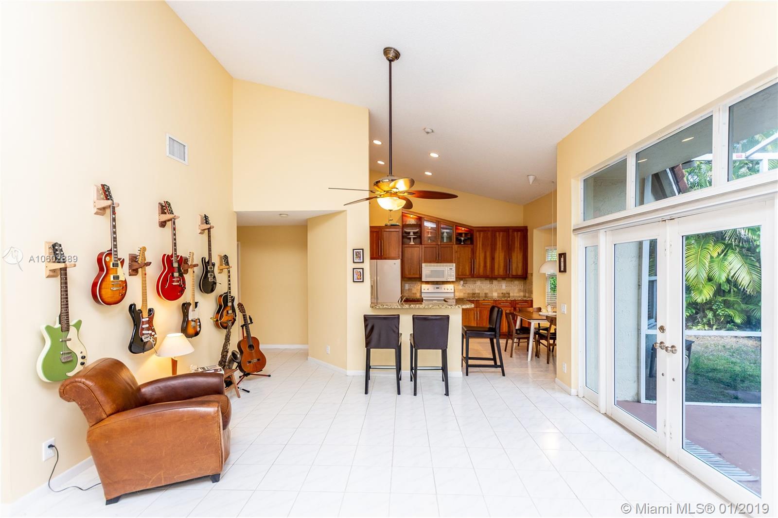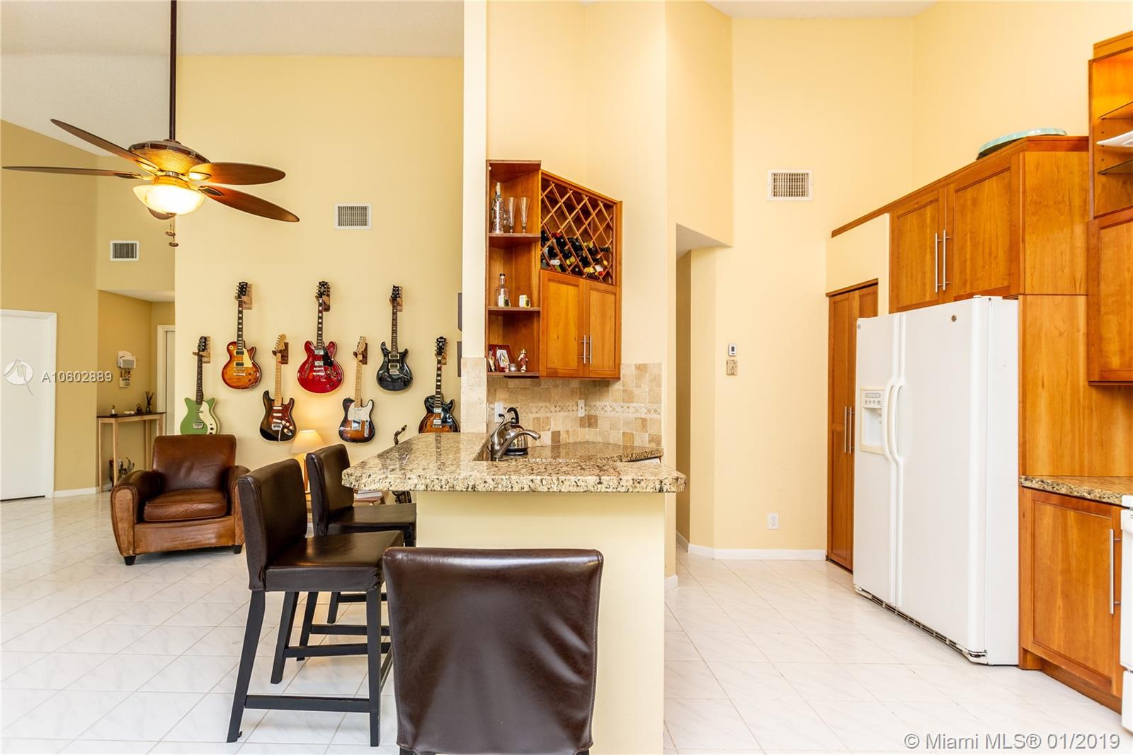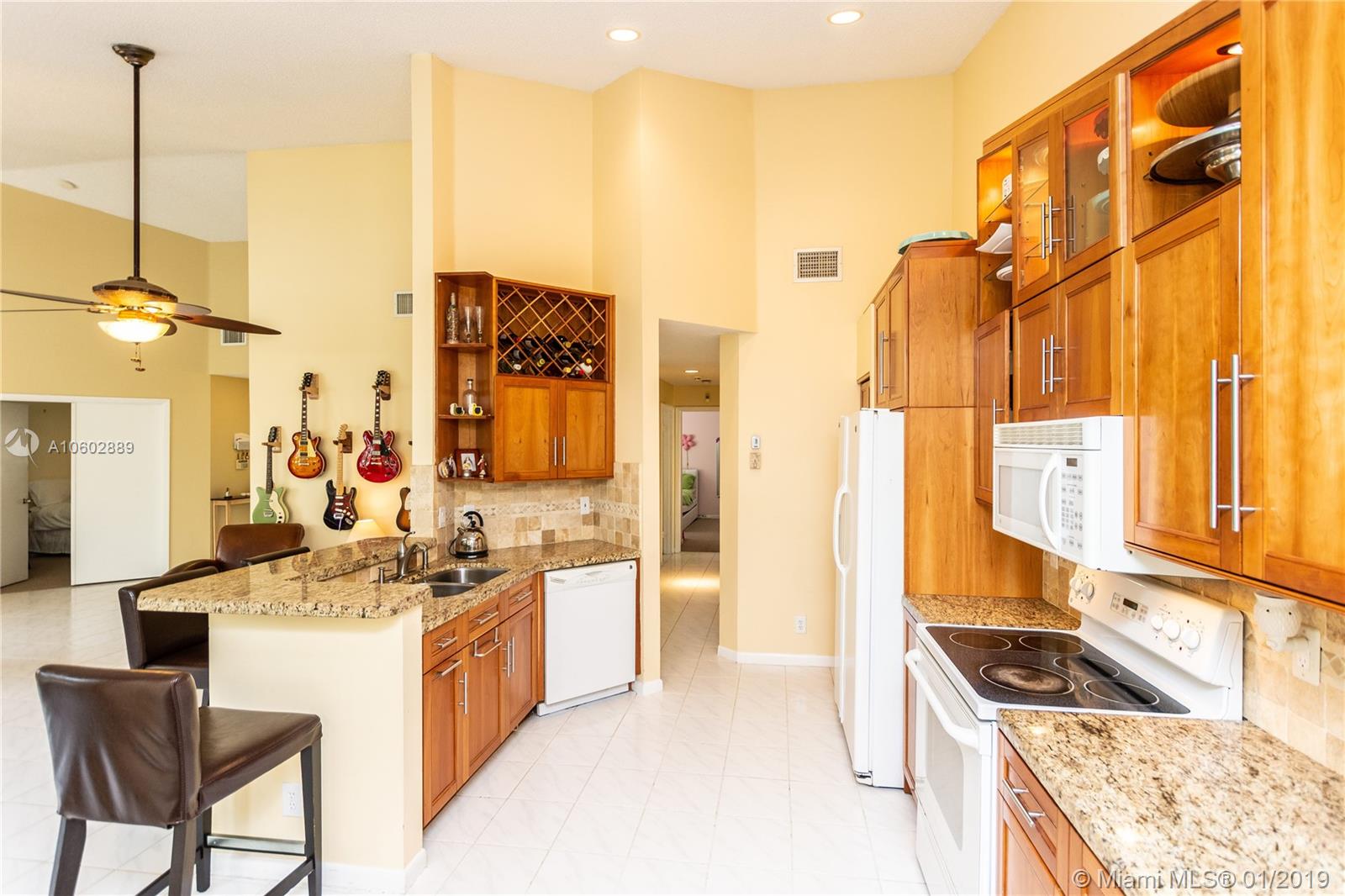 Take a look at this beautiful one story that is nestled in Hibiscus Island consisting of only 116 homes! Here in Weston's perfectly placed, gated neighborhood, you will find canopied, tree lined streets, a welcoming pool & playground, & THIS 3 bedroom, 2 bath gem complete with impact windows. This bright sun-kissed home welcomes you the minute you walk in with it's vaulted ceilings and open concept living. Plenty of granite counter space, breakfast bar & solid wood cabinets make this kitchen a dream! The split bedroom floorplan offers just the right amount of privacy. The master bedroom is generous in size w/ a walk in closet, master bath w/ double vanity, & separate large shower & garden tub. The outside is complemented w/ a Chicago brick courtyard entry & a screened in porch for dining.