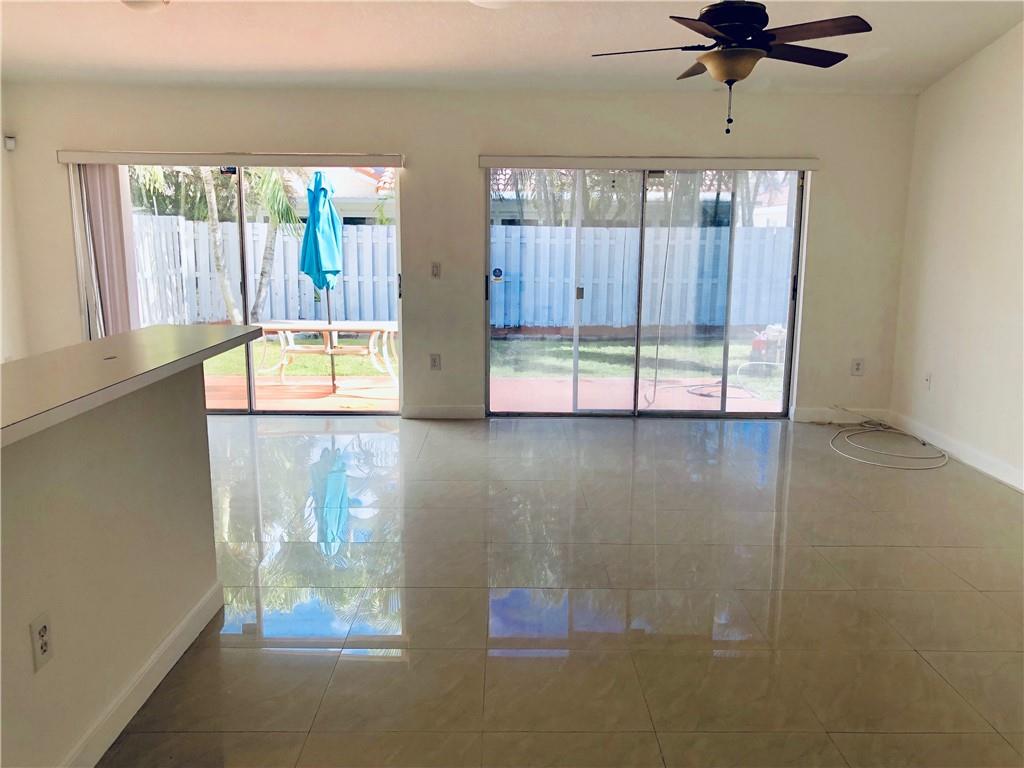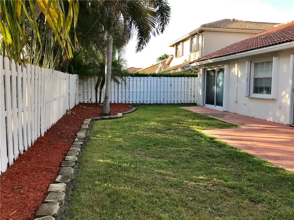 This beautiful home located in the heart of Sawgrass features a formal entry living & dining room, an open eat-in kitchen with island overlooking the family room & 2 big sliding doors to the backyard. All of the bedrooms w/laminate floors are on one side of the house. Master bathroom includes 2 vanity sinks, roman tub and & separate shower. Indoor laundry room. Fenced in backyard with palm trees & room for a pool. Accordion shutters & hurricane garage door. High ceilings, freshly painted, walk in closets & plenty of windows that allow lots of natural light. Porcelain tile throughout the rest of the house. Quiet neighborhood with great schools. Walk to Sawgrass Elementary & parks. Minutes from highways, Sawgrass Mills Mall, restaurants and more!