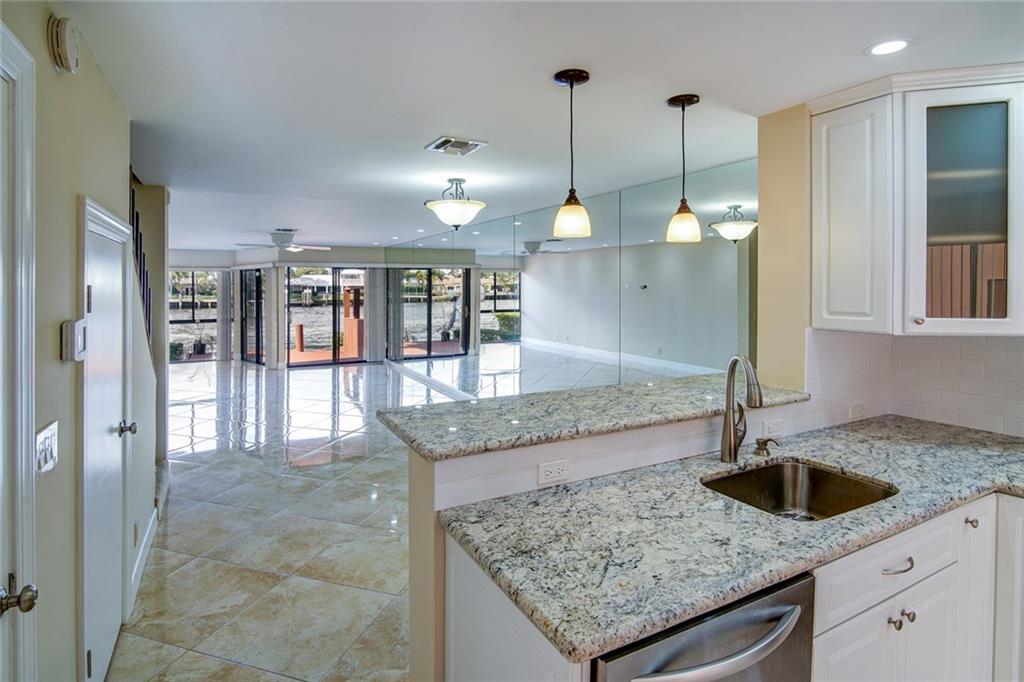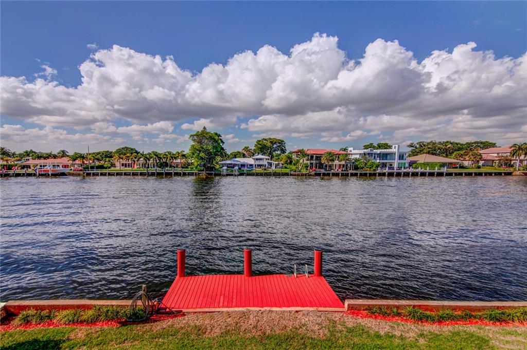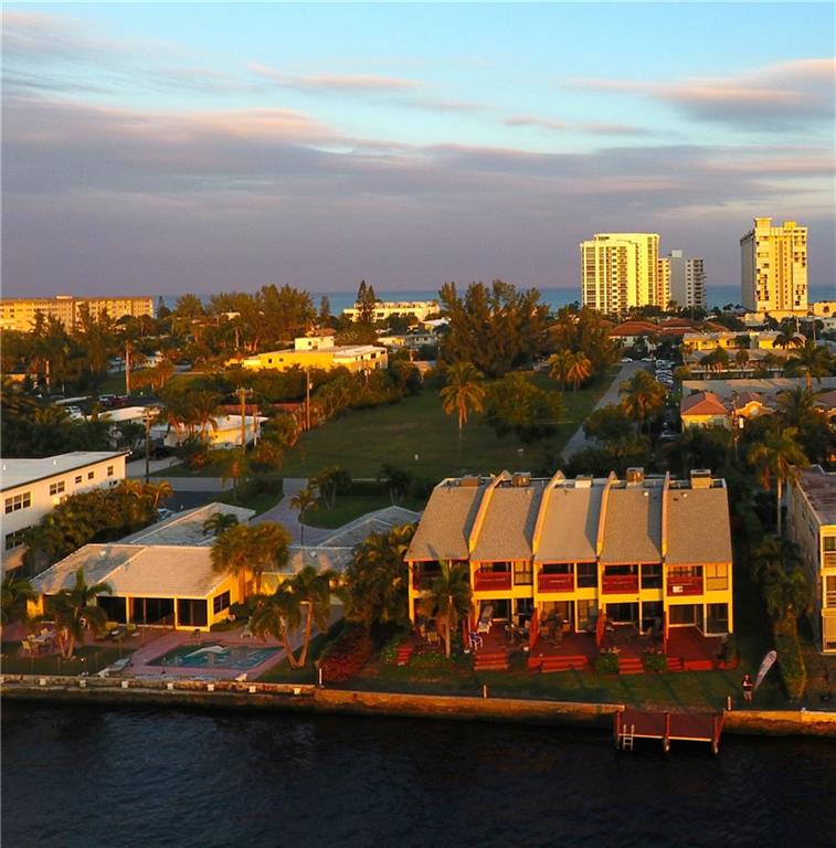 Spectacular direct Intracoastal Front property w/breathtaking Views and Sunsets. A Rare Find!! Tropical Breezes tease you as you enter the Private Paver Courtyard / Gardens, Hinting at the incredible waterfront experience that awaits you. Sparkling Interior w/ polished Floors and Mirrors, and an exciting Gourmet Kitchen w/ Breakfast Bar make you feel as if in a dream. Large Living and Dining Spaces and Wall of Glass reflect the movement of the Intracoastal Waterway. Walk out onto the covered Deck, take in the panoramic views, large Lawn and Dock, perhaps your friends will stop by on their boat later and pick you up... elegant Master suite w/private waterfront Balcony, NEW Modern Bath, X-Large 2nd Bedroom is Grand w/ NEW Modern Bath and Roof Top Terrace. The Best of Florida is Here for you