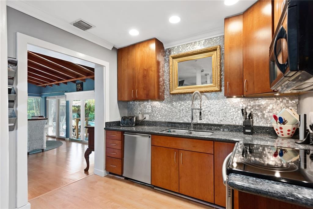 YOUR PRIVATE OASIS, UPDATED THROUGHOUT. UPDATED KITCHEN AND BATHS, NEW FLOORING IN BEDROOMS. TANK LESS WATER HEATER, 2 ZONES OF A/C LESS THAN 6 MO OLD. FABULOUS PRIVATE BACK YARD WITH OUTSIDE COVERED BAR. LARGE UTILITY ROOM. 2 MASTER SUITES. 1 CAR GARAGE. BEAUTIFULLY LANDSCAPED THROUGHOUT. TOTALLY FENCED IN FOR PRIVACY. BEAUTIFUL POOL AREA. GREAT LOCATION EAST OF BAYVIEW. WALKING DIST TO RESTAURANTS AND OCEAN. THIS IS A MUST SEE!!
