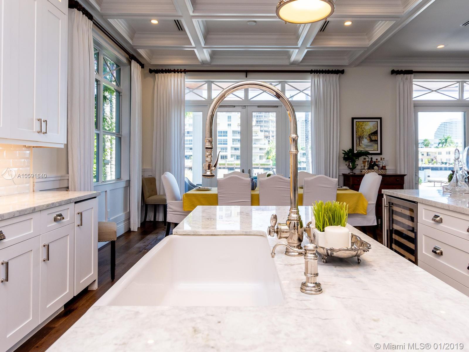 Exudes the feeling of "HOME" the minute you walk into this custom built designer British west indies style home which boasts 100' of Intracoastal Waterway, with an 80'X10' concrete dock. Complete with 6 FULL bathrooms in main house and 1 FULL bathroom in "Mother in Law Suite". Main house has 4 ensuite bedrooms, an office off of the kitchen and mudroom. The 4th bedroom has 2 bathrooms, "the bunk room", is 28'11" X 15' a total of 421.65 sqft designed to be converted into two bedrooms if needed. A wood burning fireplace in the upstairs family room. Custom built-ins. Open floor plan to maximize the Intracoastal Waterway views. Truly a unique home with top of the line kitchen and finishes throughout in the most sought out community in all of Fort Lauderdale, Sunrise Intracoastal.