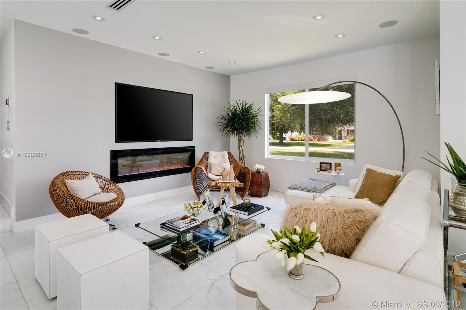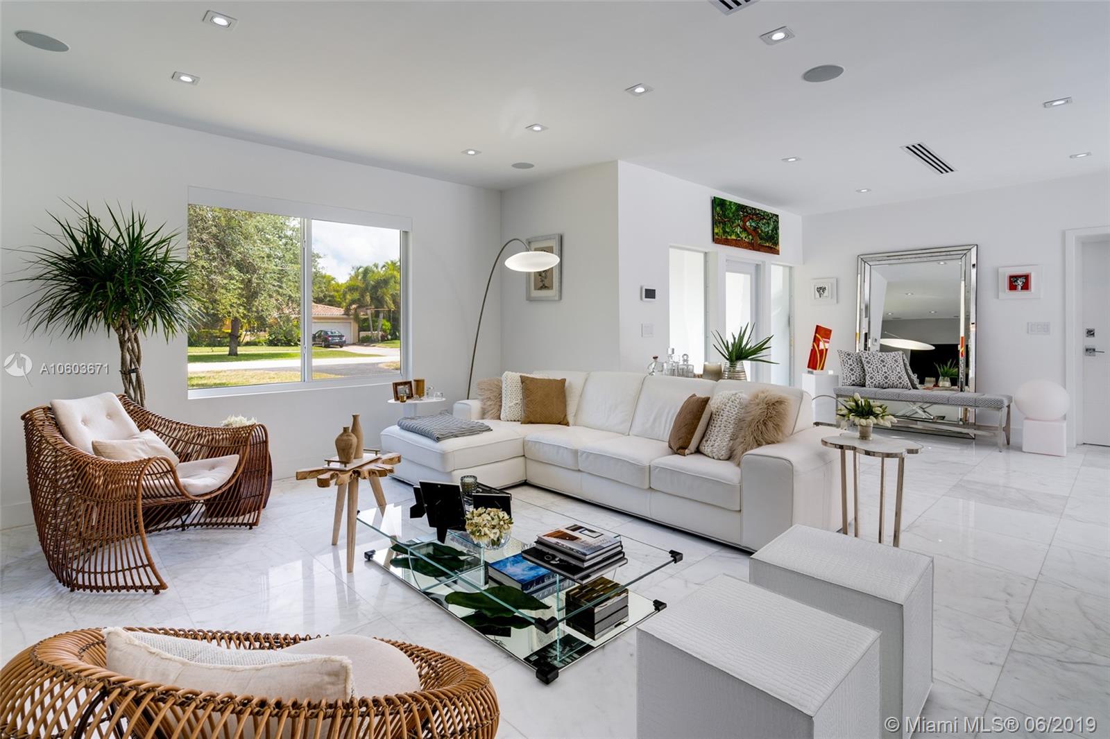 Completely remodeled home in an excellent location south of Coral Gables. Spectacular Kitchen with top of the line finishes and Quartz countertops. Open and spacious living spaces. Fully equipped smart home. It features Marble floors, Thermador appliances, impact windows, 8 foot tall interior doors, electric shades, and much more.