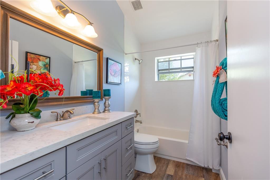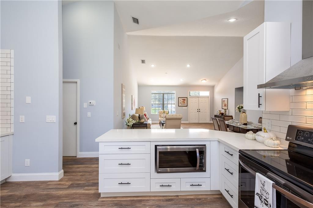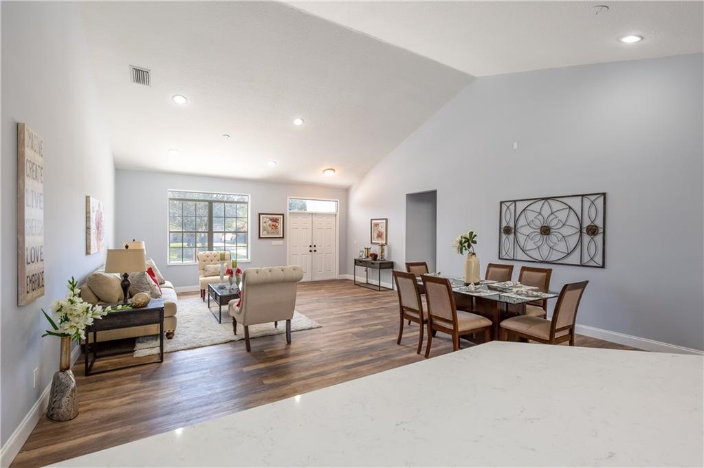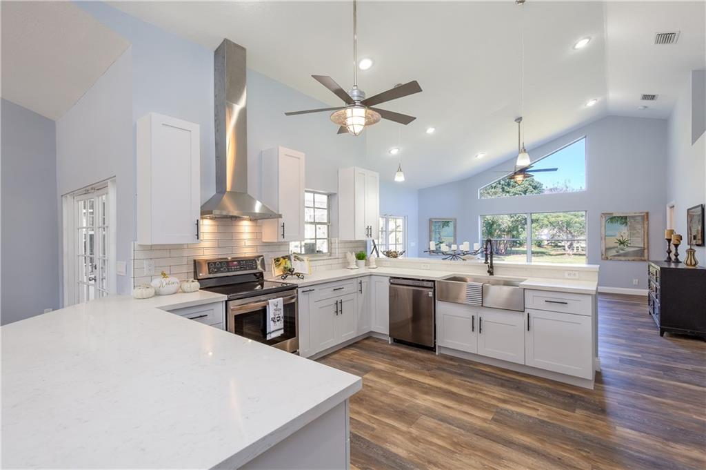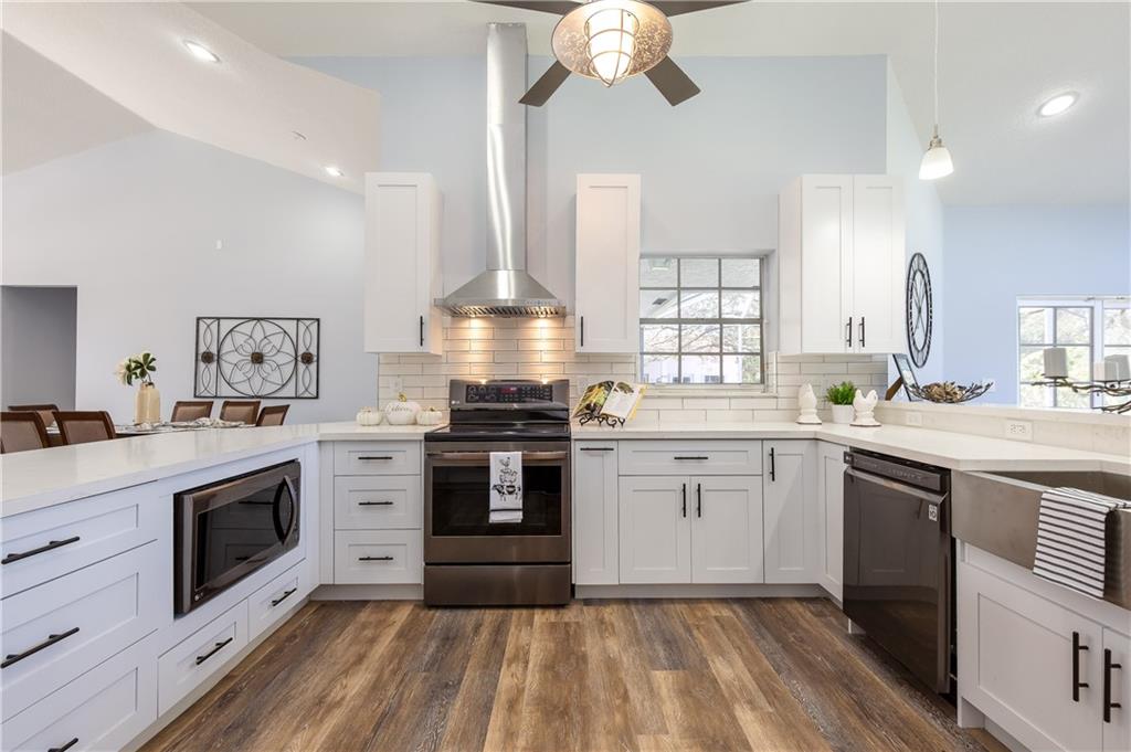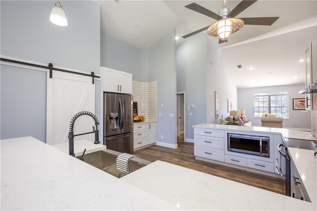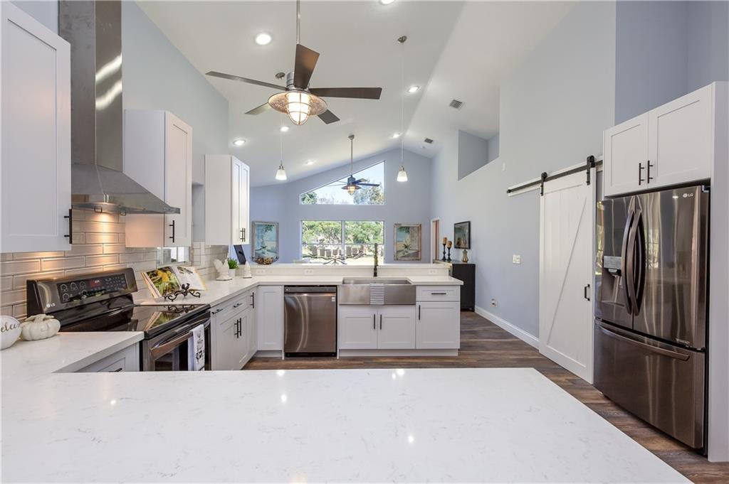 This magazine quality modern farmhouse has a large split floor-plan complimented by soaring vaulted ceilings and a designer style kitchen perfect for a chef featuring a huge farm style sink overlooking your acre of land, white shaker cabinets, dry bar, trendy barn door on pantry, and new black stainless steel appliances. The master suite has two walk in closets before you enter the resort style master bathroom just waiting for your toothbrush. The screened in porch, massive 1 acre yard, large circular driveway, quiet cul-de-sac street, and bonus Rec Room/Gym/Office with separate entrance and turf style carpet are perfect for both teenagers and entertaining guests. Prime location for country living by a big city. New Paint. Wood Look Floors. Run your business. Horses welcome. Room for Pool.