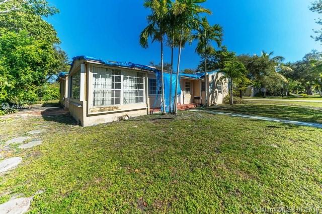 Opportunity awaits in this Miami Shores home. Home has 4 bedrooms, 3 bathrooms, and an attached garage. Tile flooring throughout, Spacious kitchen with ample counter space, and a fireplace in the living room. Home needs roof repairs, and repairs caused to interior from bad roof. Mold discoloration present.