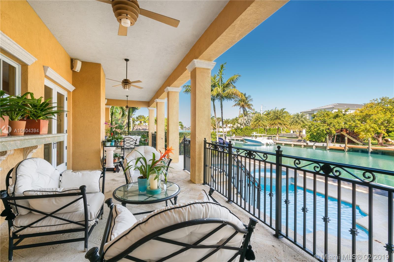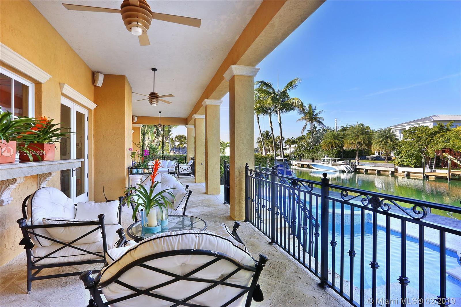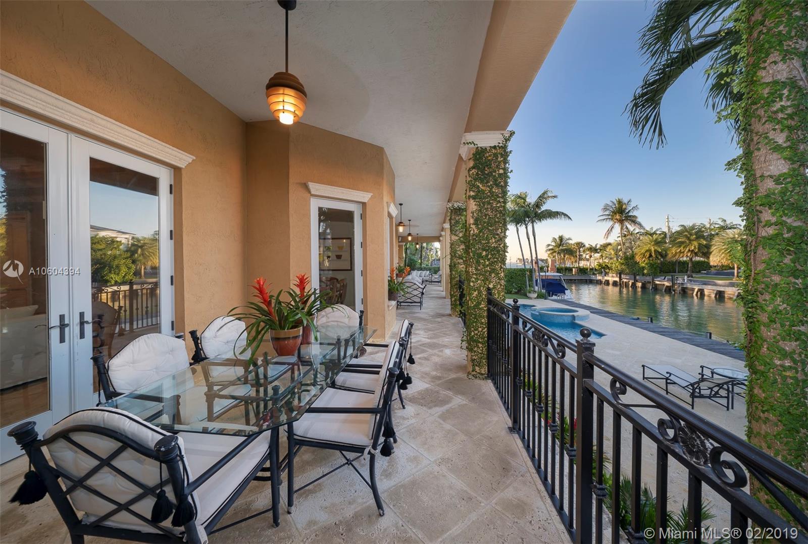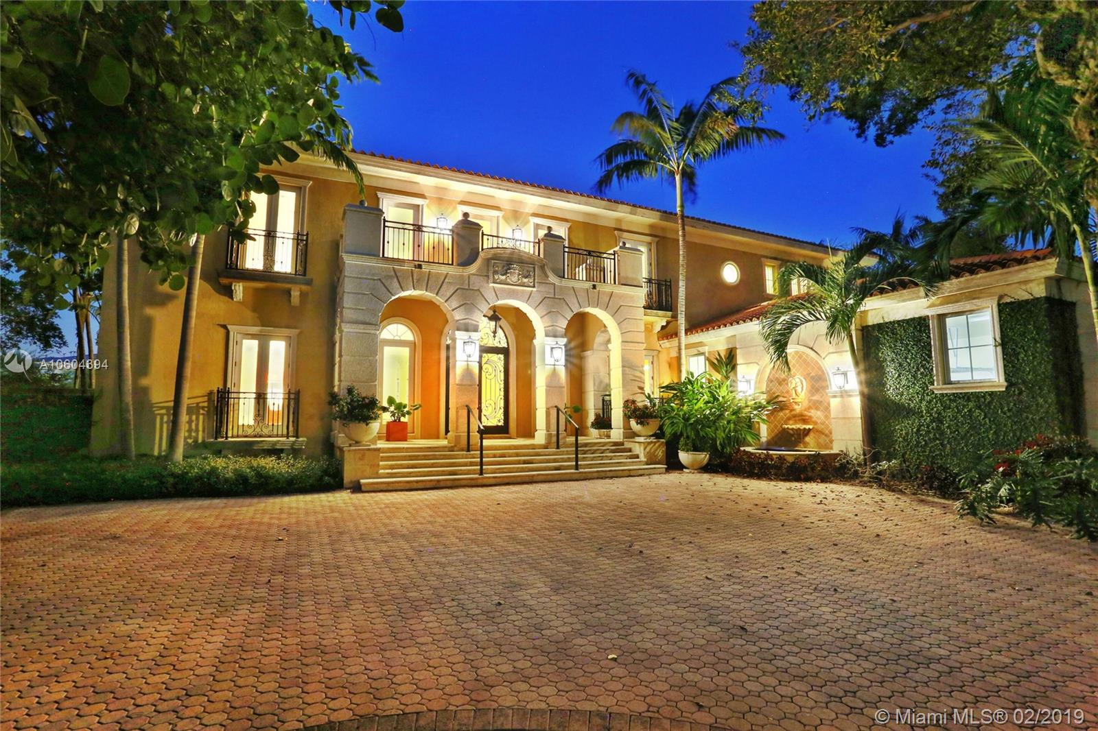 Stunning Bay, Harbor and Miami Skyline Views from this Addison Mizner-inspired waterfront estate. Villa Bellavista, built in 2002 and meticulously maintained, located in a quiet cul-de-sac on Key Biscayne’s coveted Mashta Island. Residence boasts 5 suites upstairs, 2 suites down for office/library/service/guest quarters, 7.5 baths, huge Master Suite with sitting area, Formal Living Room with fireplace, Family/Entertainment Room, Formal Dining, Modern Kitchen, Breakfast Area, all leading to broad open terraces with spectacular water views. Amenities include dual entrances, privacy wall, electrical gates for bothl driveways, 3-car garage, courtyards, pool, spa, new sea wall, 120ft of waterfront and dock for large yacht with immediate access to Smugglers Cove and Biscayne Bay.